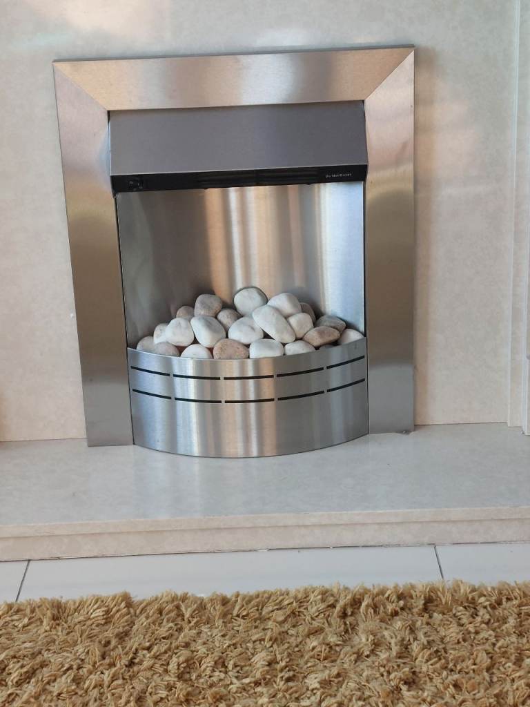 Beautiful real Marble fireplace with modern electric fire. Both items are in mint condition. Only selling as we're changing our living room. Measure 54 inches wide by 42 inches high. Fireplace and fire have no defects. Bargain.