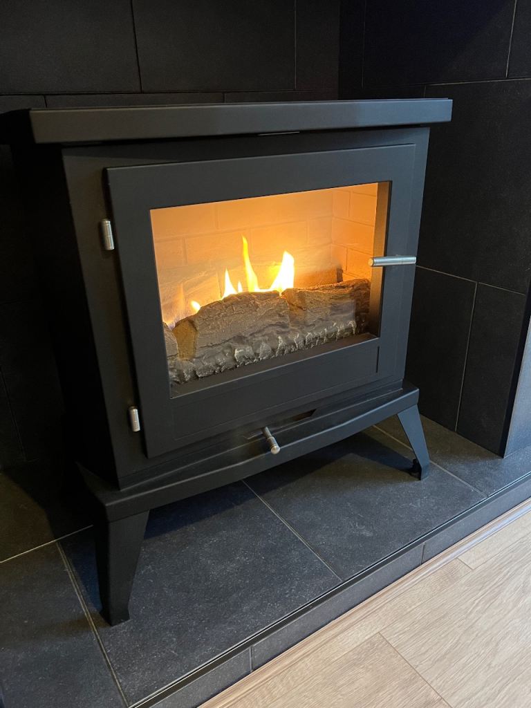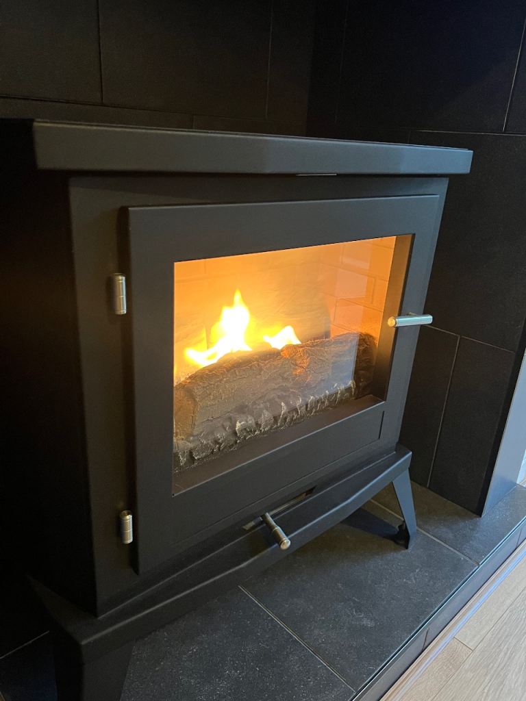 Selling a stylish Doughton flueless gas stove by Superior Fires. This is a high-efficiency, modern gas stove with real flame effect – perfect if you want the look of a fireplace without needing a chimney.