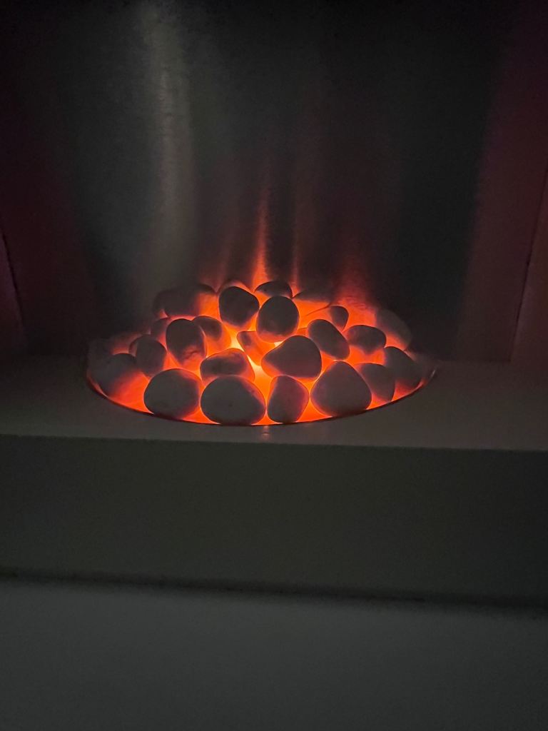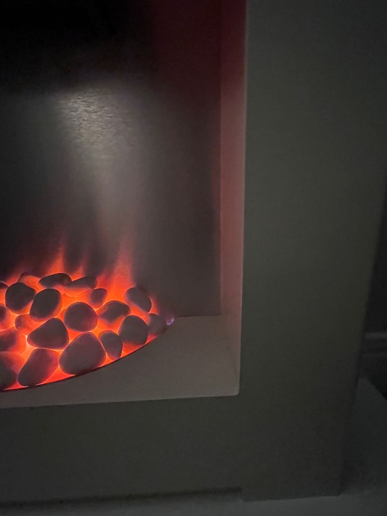 Next electric fireplace cream colour and silver background