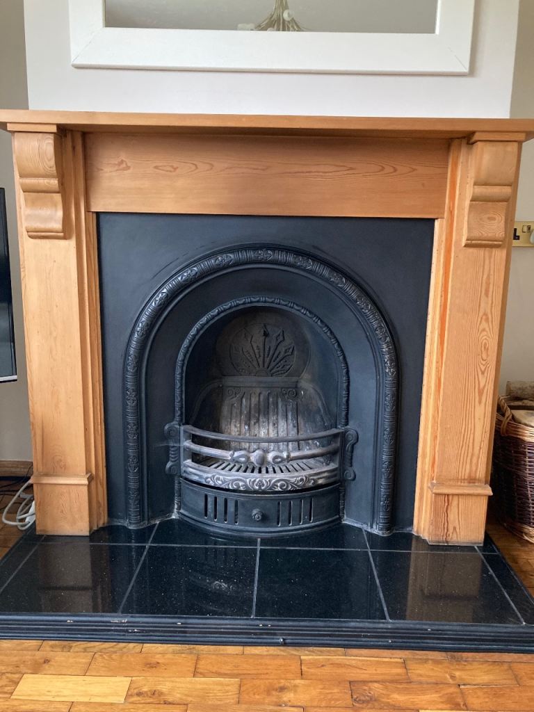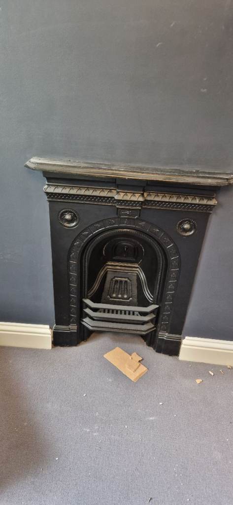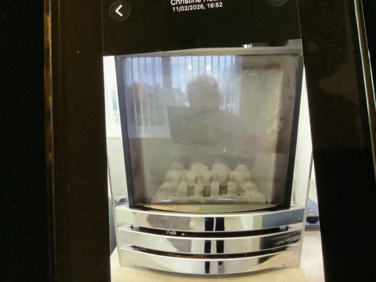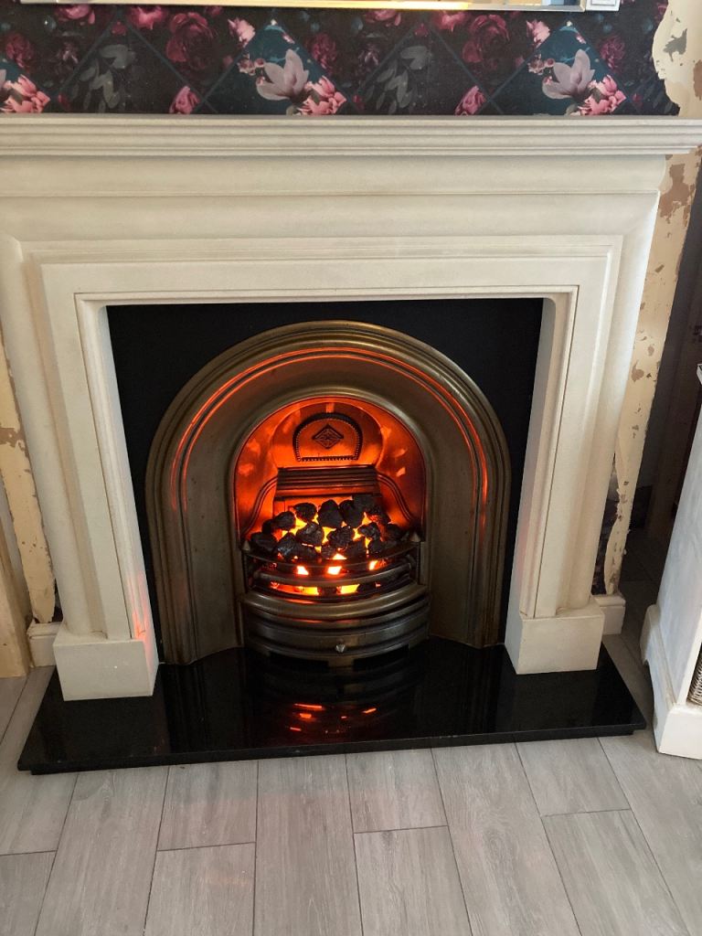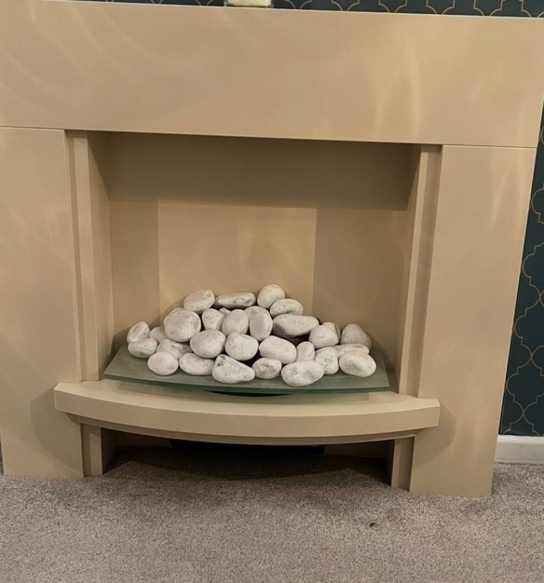 Fireplace is sold as decoration only (the electrical panel doesn’t work). No lights or heating included.