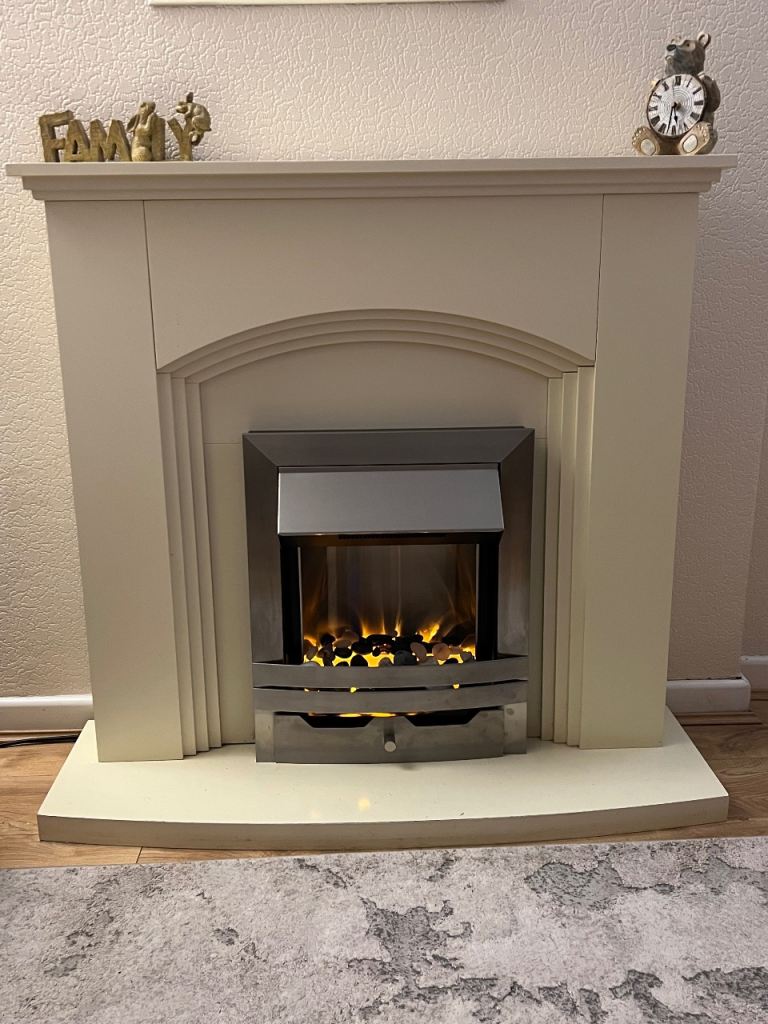 The white surround mantelpiece design creates a pristine, focal feature in your living area, with no assembly required .