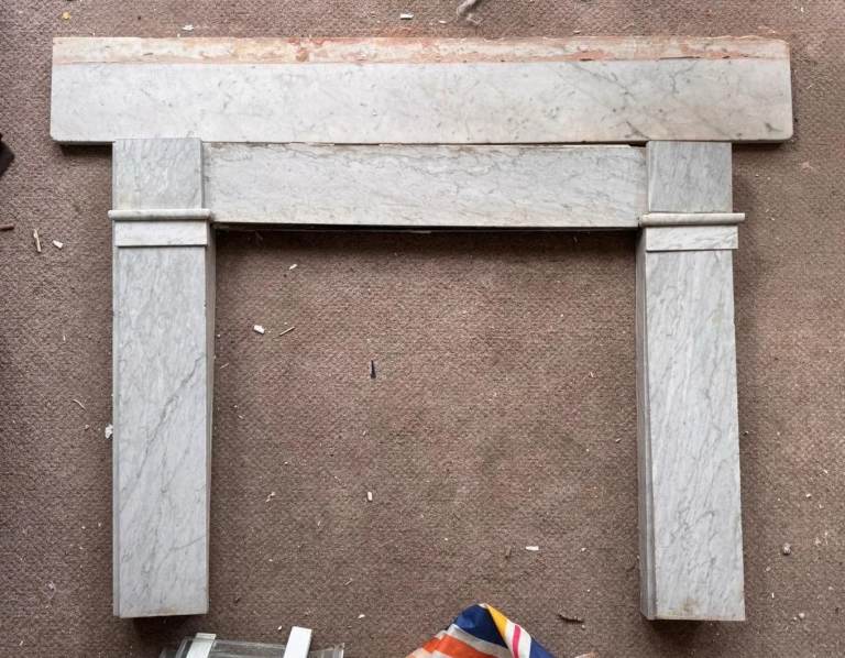Original Victorian Carrara marble fireplace surround removed from a period house.