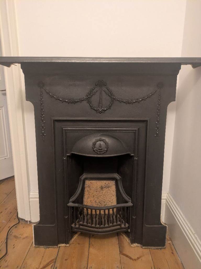 Large vintage traditional cast iron fire basket 24ins by 14.5 ins wide and 14.5 ins deep (61 cm by 37 cm wide and 37 cm deep)