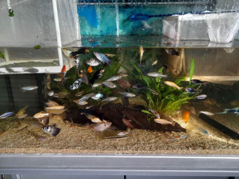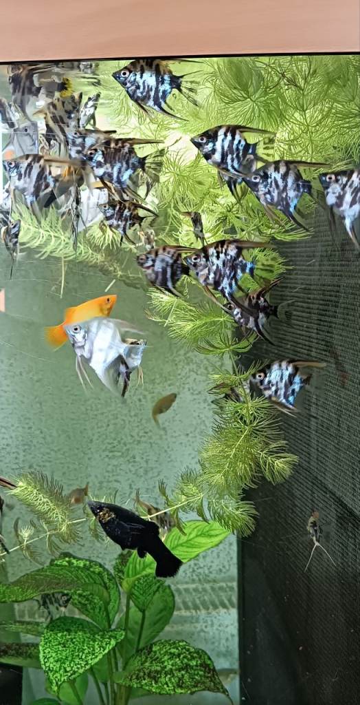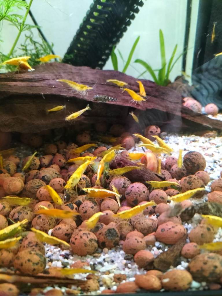 Posting for under a month3 x fish 4 x shrimp with tank pump food etc
