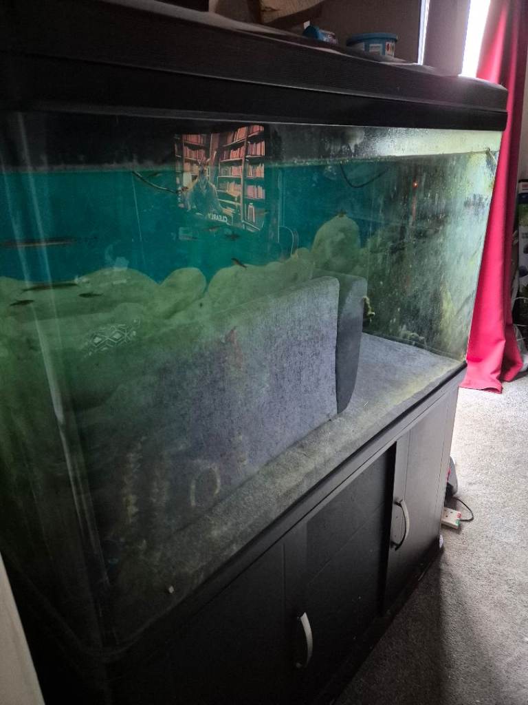Large fishtank with fish,filter,heater. Lighting unit and bubble maker. Looking to down grade. Pickup only