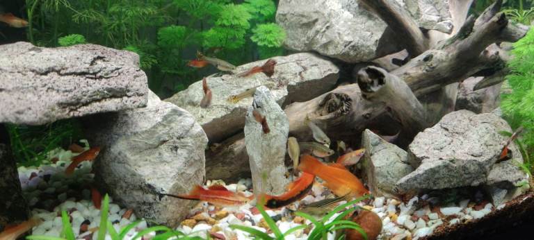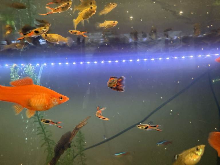 I have shrimps 6 for 5£ and baby Guppies 8 for 5£. baby red swordtail fish 6 for 5£