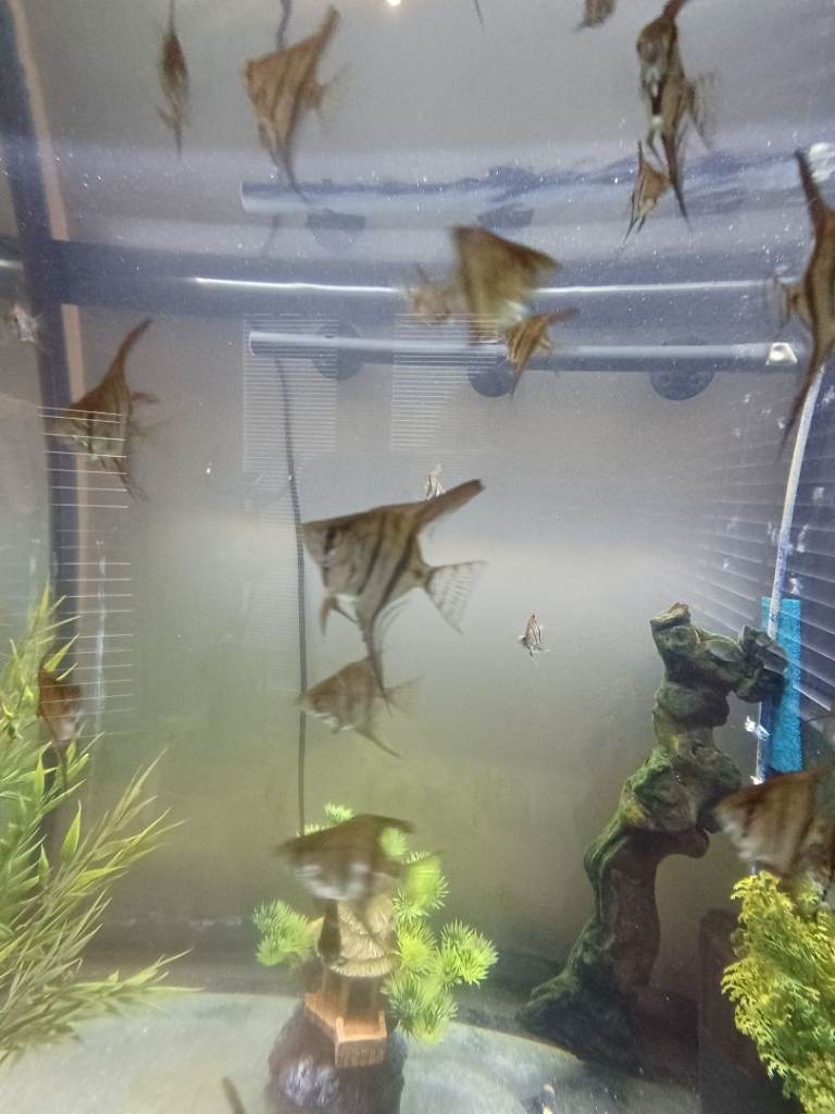 Young Angel fish for sale around 4 months ready to leave now. Brought up by parents eating and growing well parents can be seen.