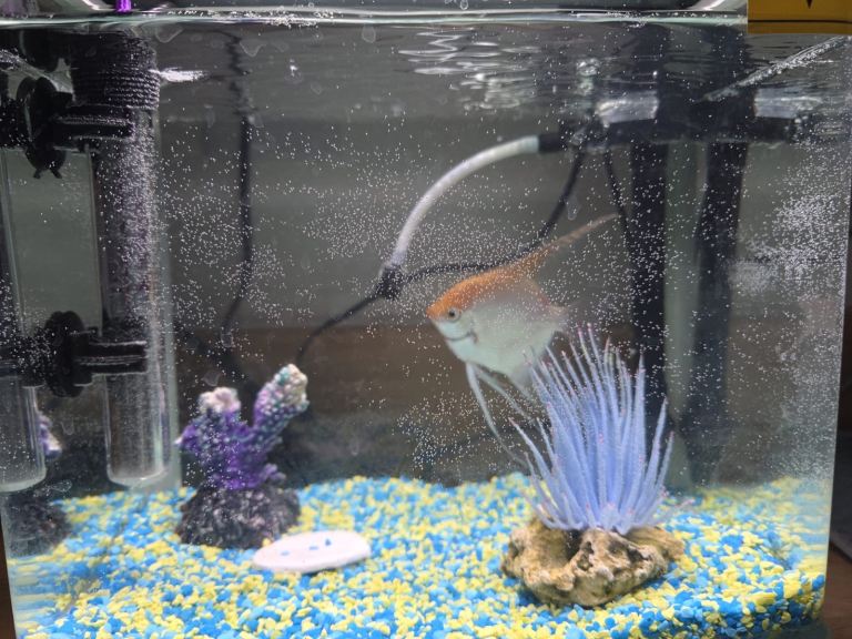 1 angel fish with 20 gallon tank, with all decor, filter, heater and lights included