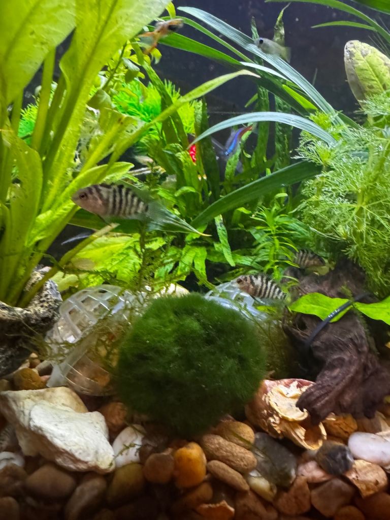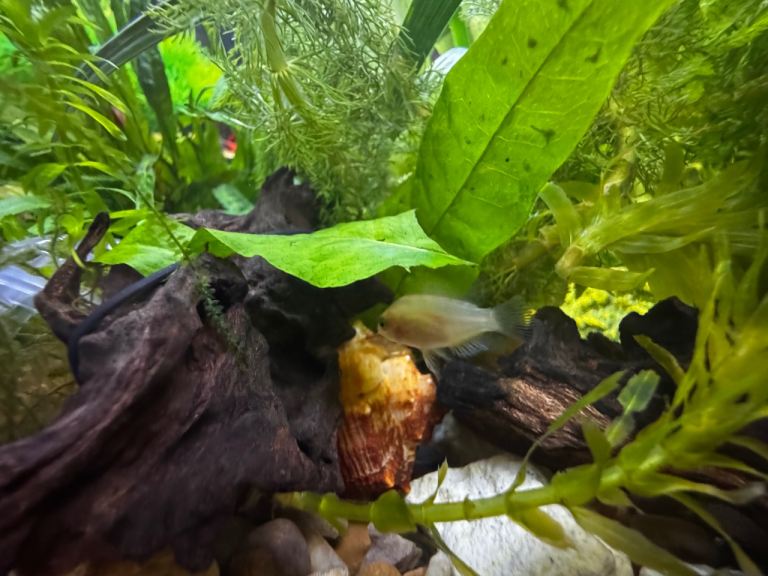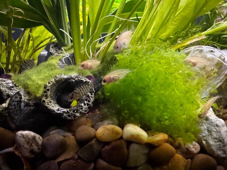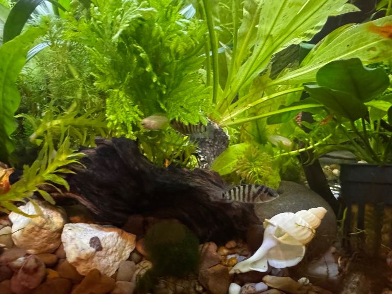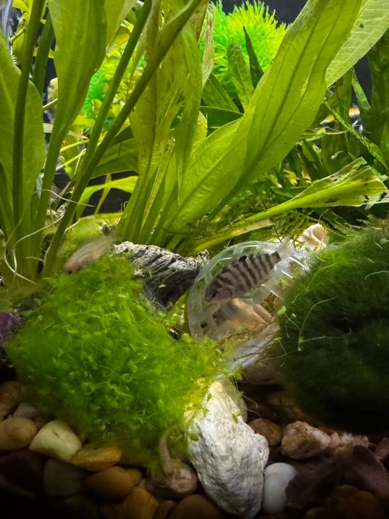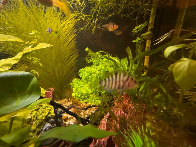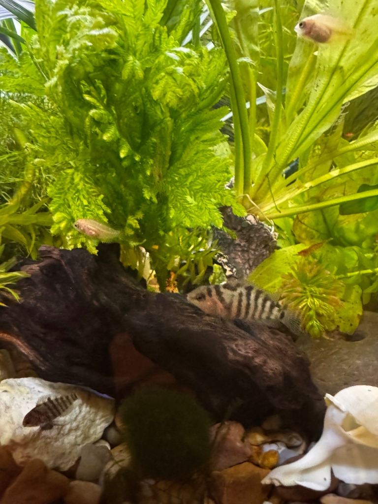Approximately 20 juvenile convict cichlids available. They are in a community grow-out tank.