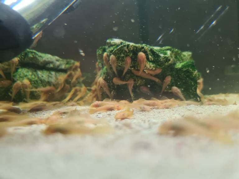 Here I have lovely gold baby bristlenose Catfish they are just over 5 months old ready to leave they are not your average bristlenose Catfish the will grow to about 4 ins long and the fins will grow and stand up like sales on a yacht .it's collection only please many thanks. I have plenty of fish bags. They are now over 6mths old and are now around 1ins long growing nicely really healthy fish even though they are now bigger the price will stay the same at £1.50 many thanks.