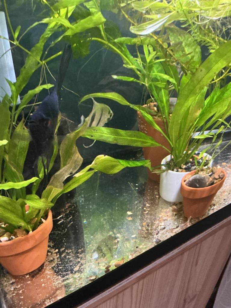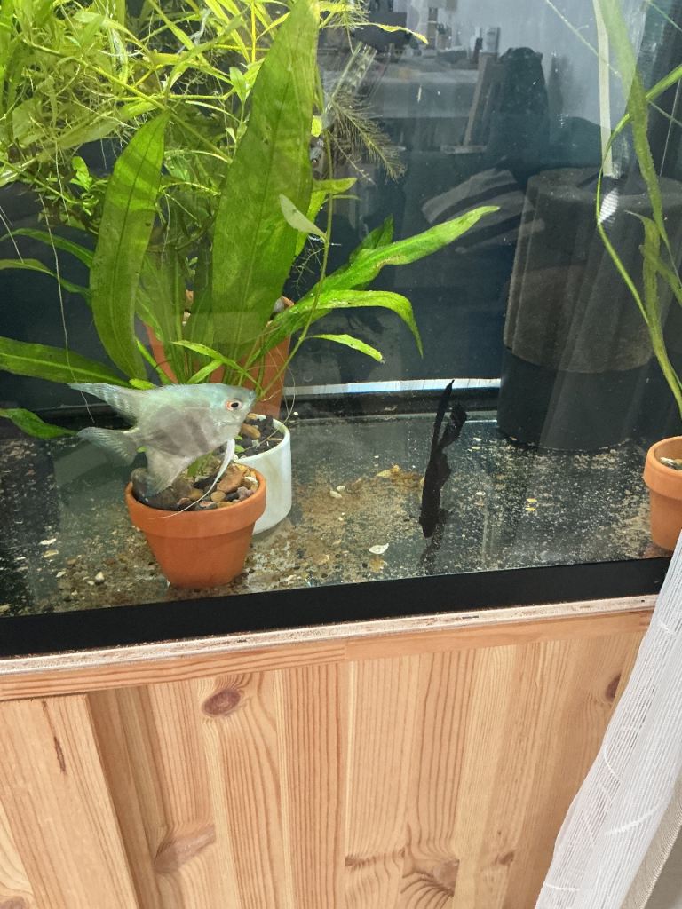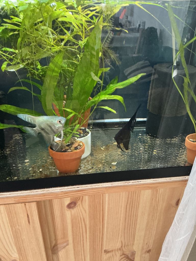 A matched pair of angelfish, a Blue Philippine and a Black Lace. They have already spawned for the first time. Ready for a new home. Price per pair: £30.