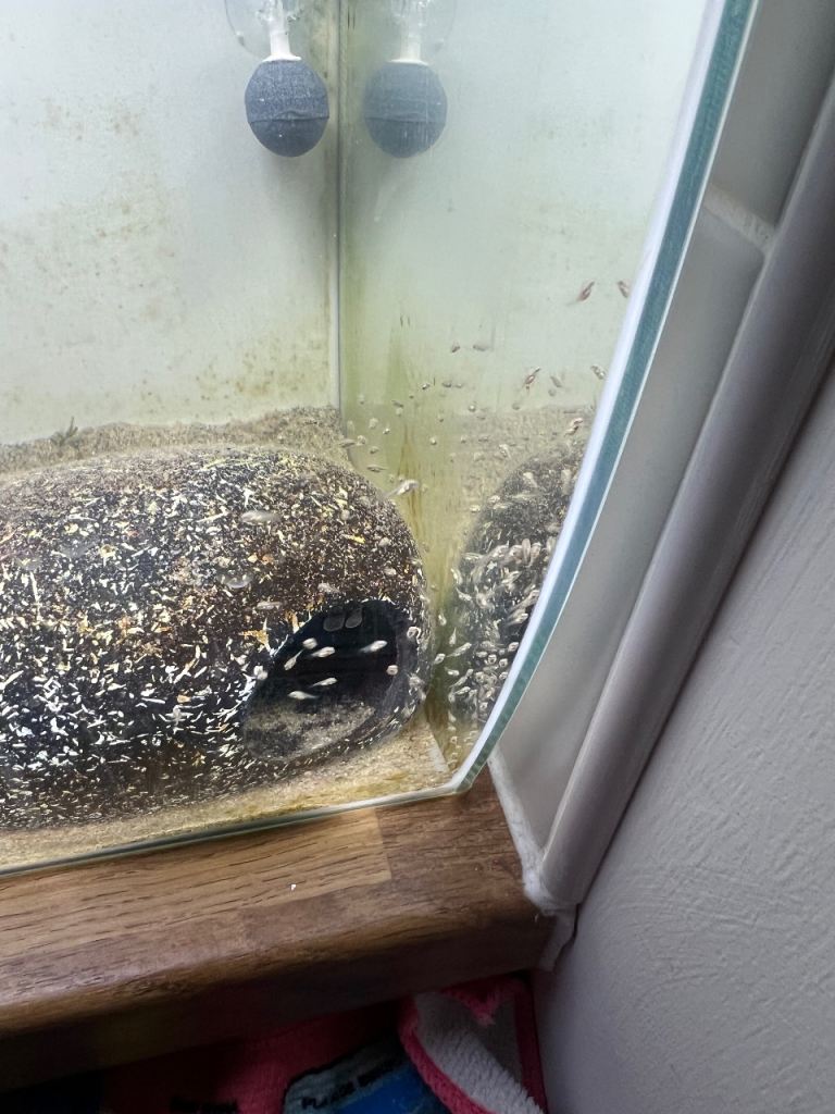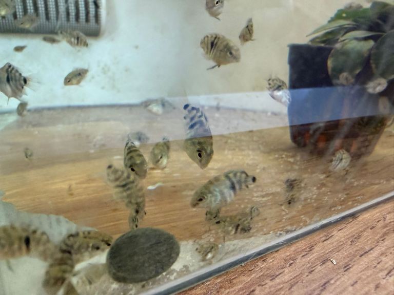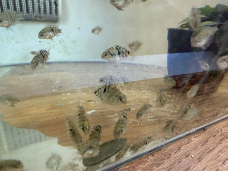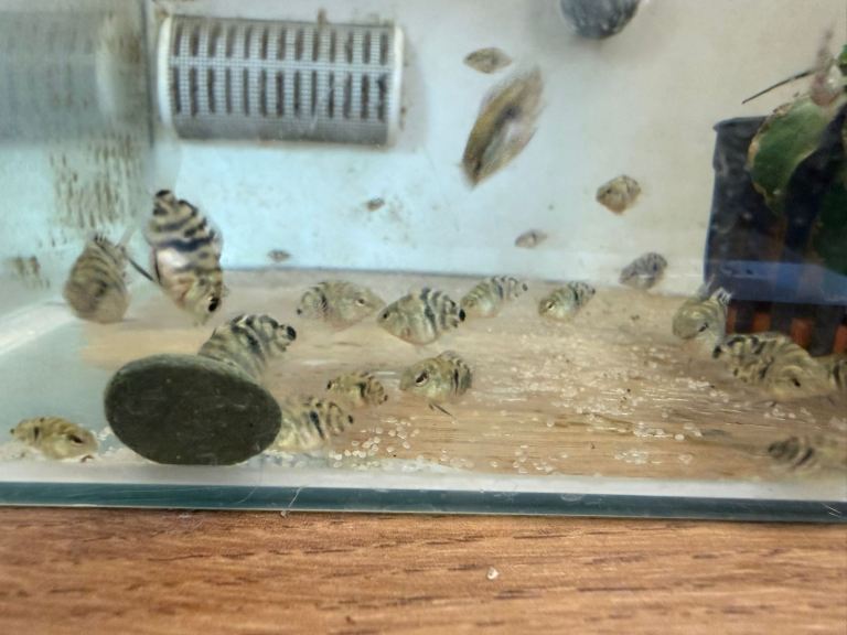 There are 2 batches available; we have kept 4 from batch 1 to observe how they develop as they grow older. These can be viewed in our large community tank if you wish.