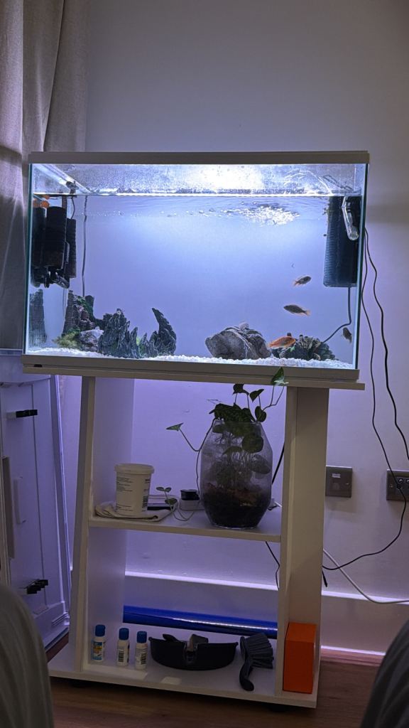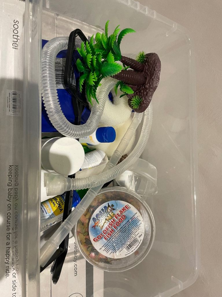 Small fish tank with a few fish for sale , everything you need and extras , still being used but due to moving home I no longer have the space ideal 1st tank