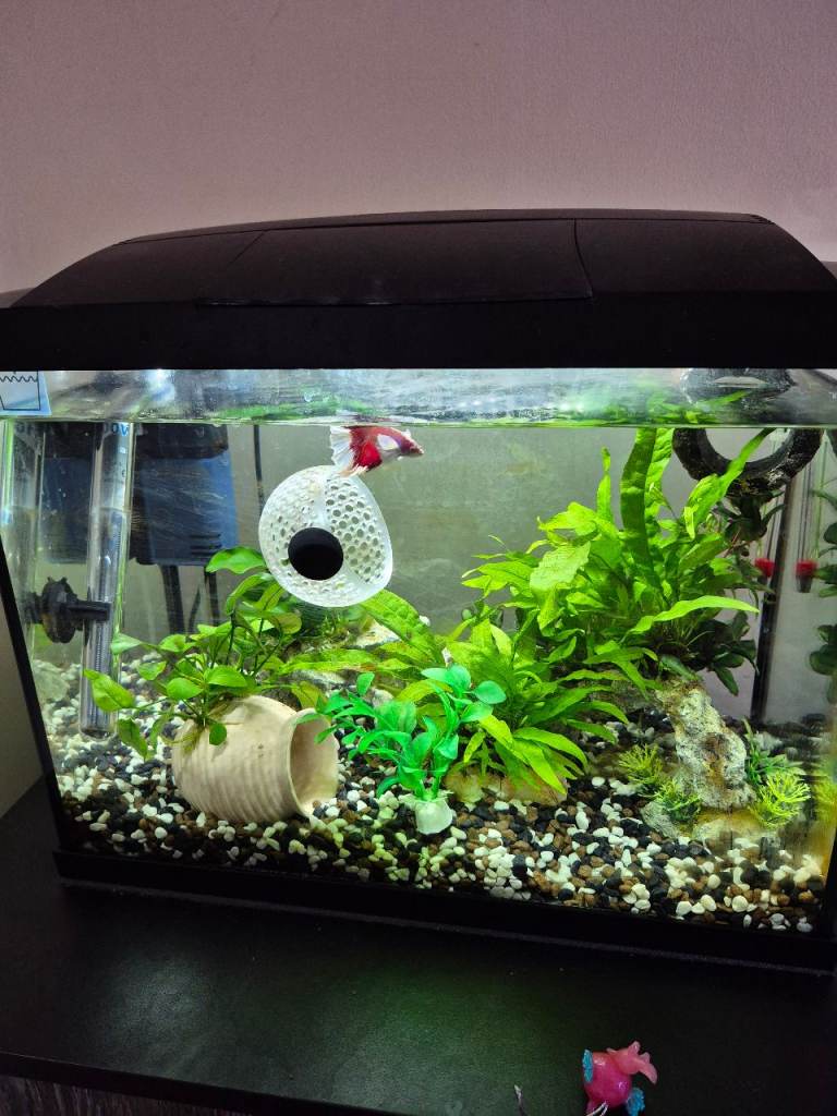 Selling 40l fish tank, will come with ornaments if wanted (they have plants on) filter and heater (100w), and fish tank stand. These aren't even a year old. Happy to include the betta fish too, if not I will take him to aquatics shop. Tank was £80 new, stand was £146 new. Open to sensible offers. (I don't know the fishes age).