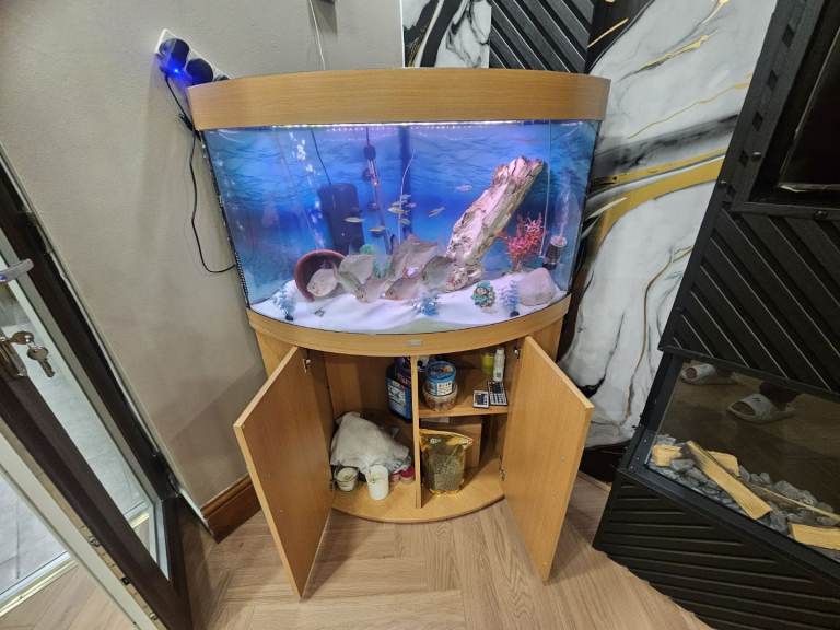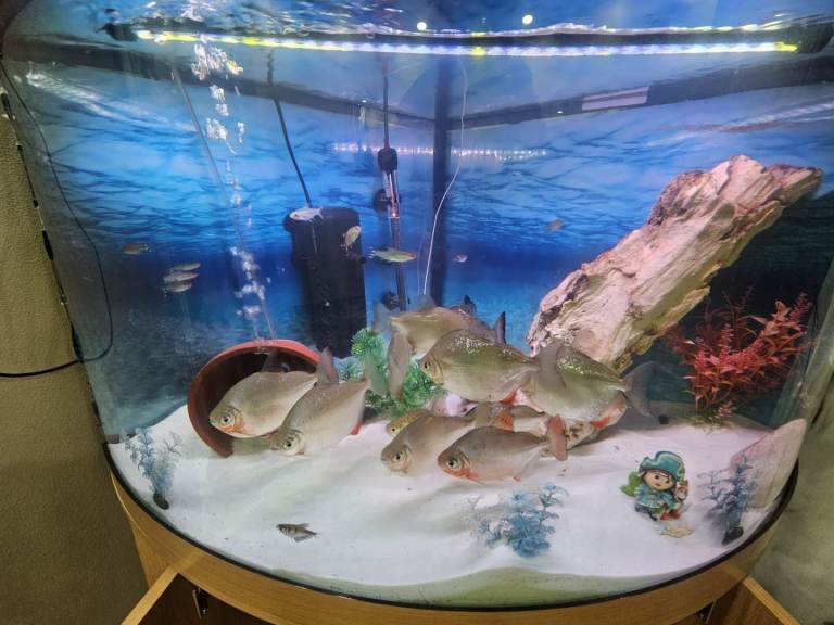 Here I have beautiful fish tank with lots of Accessories including lots of Dollers fishes plack lots other communities fishes including lots of fish food and etc.