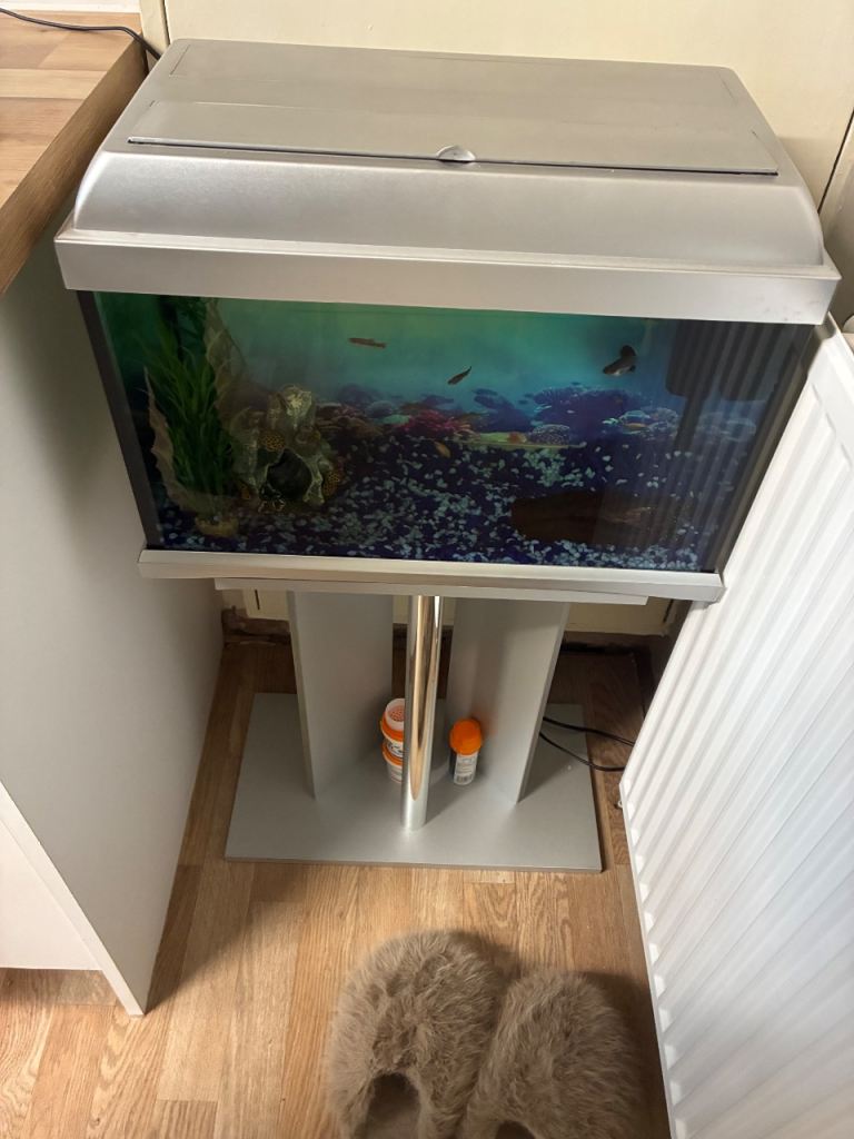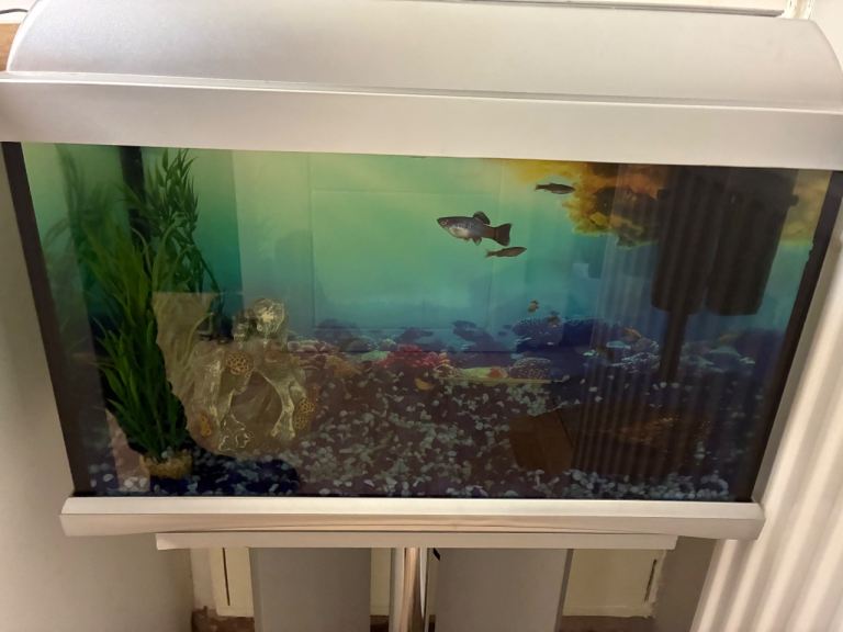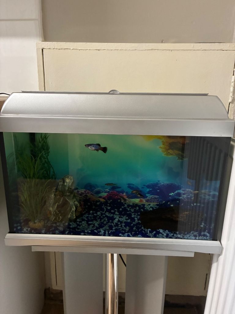 Fish tank with stand and with all the bits and even 6 fish and a strimp