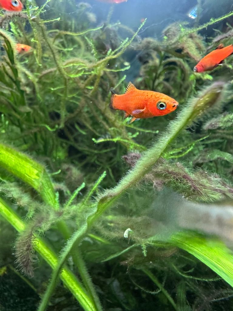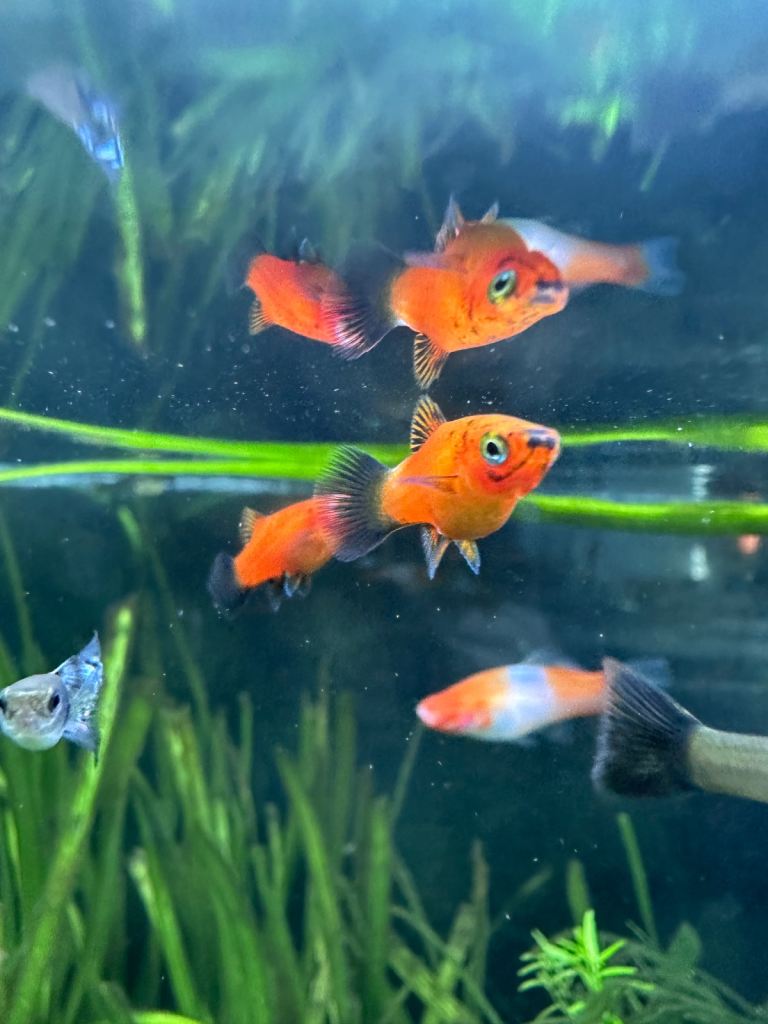 Red wagtail platies - about 50, mix of ages from tiny to breeding females