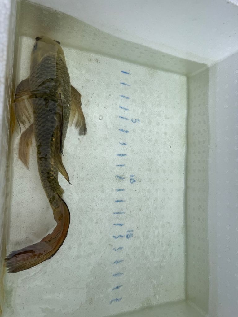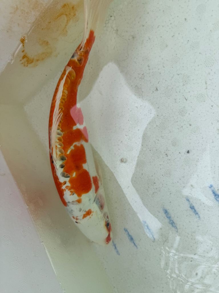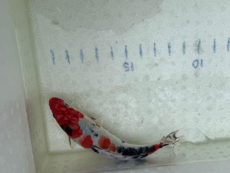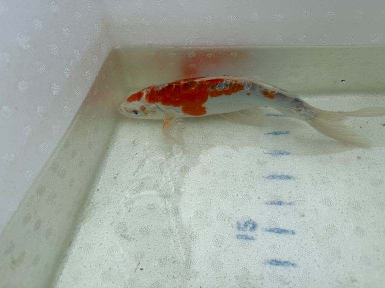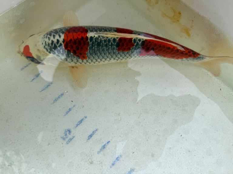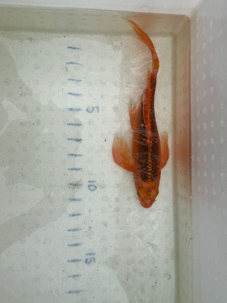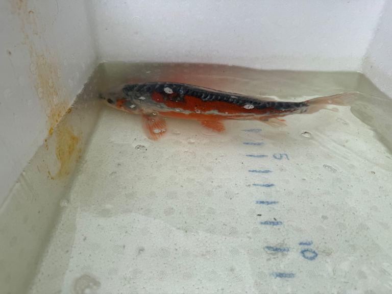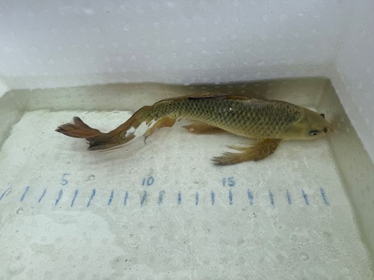 Koi carp, butterfly koi, grass carp and a baby ghost carp.
