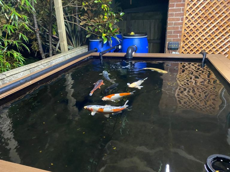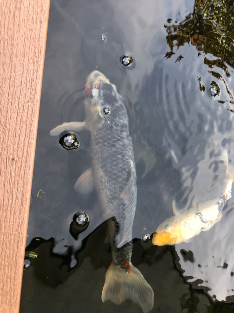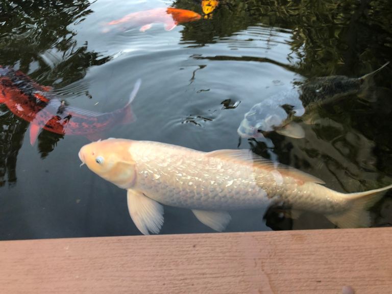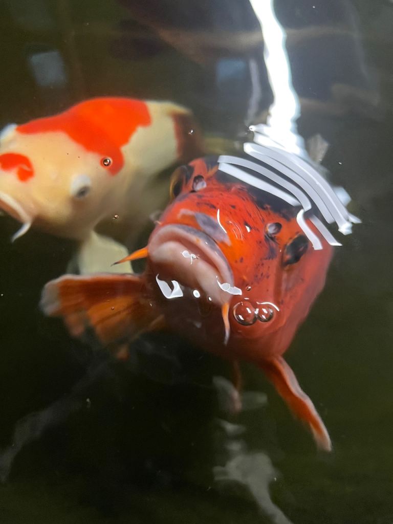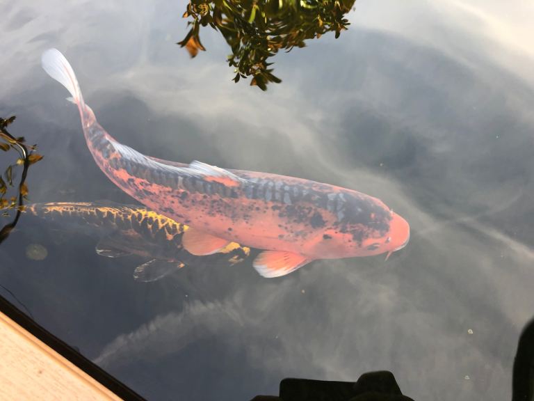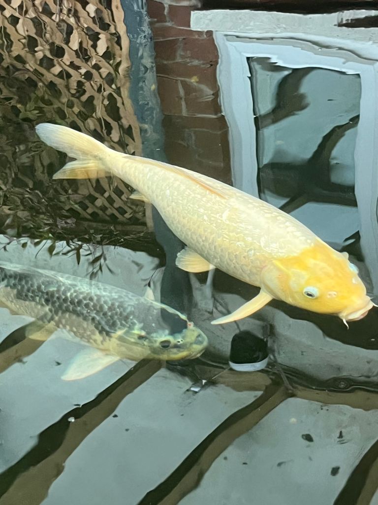 The Chagoi is the most friendliest Koi I have ever seen and Doitsu Kohaku is stunning