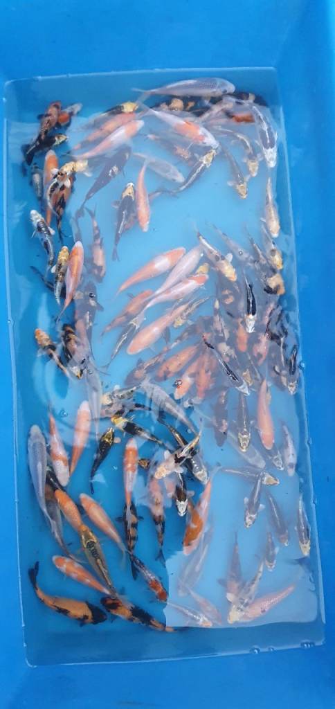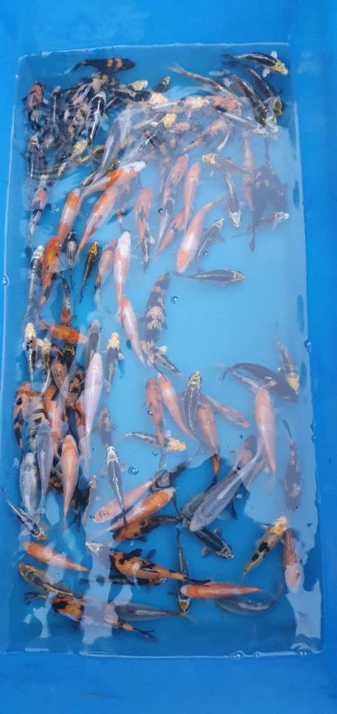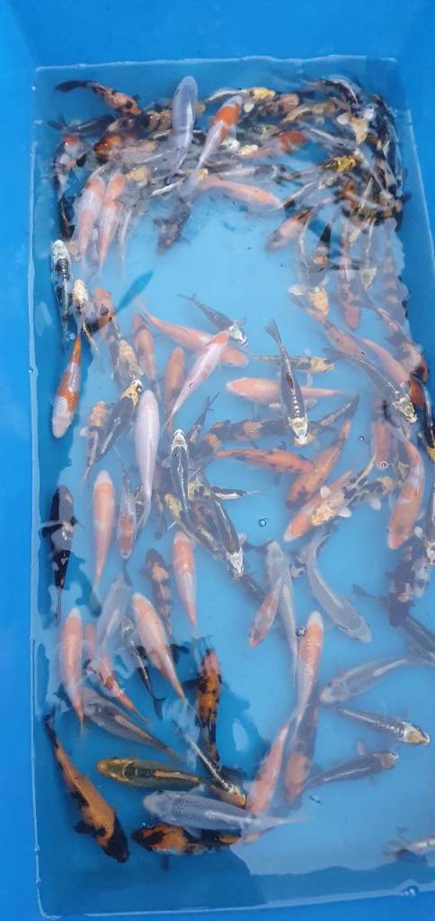 I have available 150 koi ranging from 3"-6" all healthy fish and feeding very well and growing well. Some nice fish to pick from.