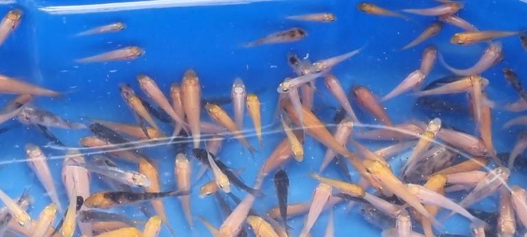 8 week old fry. Available as mixed batch only, mix includes fry from the following spawnings: