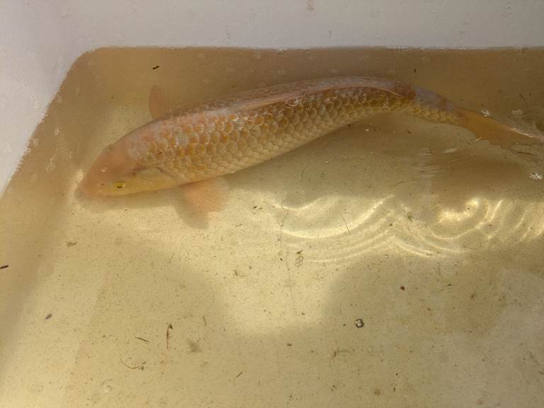 The fish for sale are as followed, koi, ghost carp, common carp, albino and standard grass carp, orfe, shubunkins, gold fish, golden tench barbel.