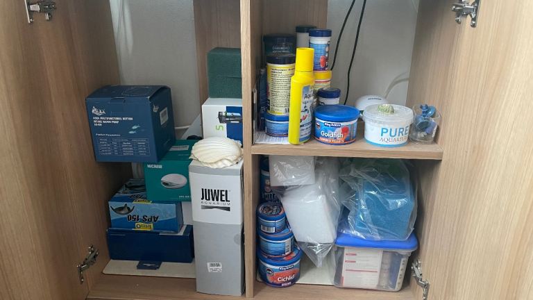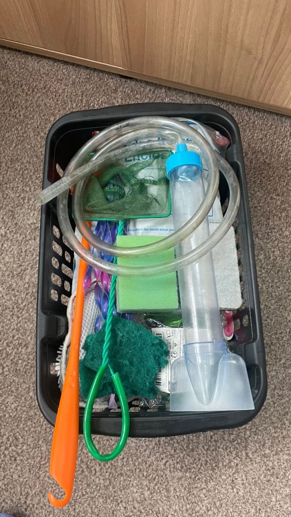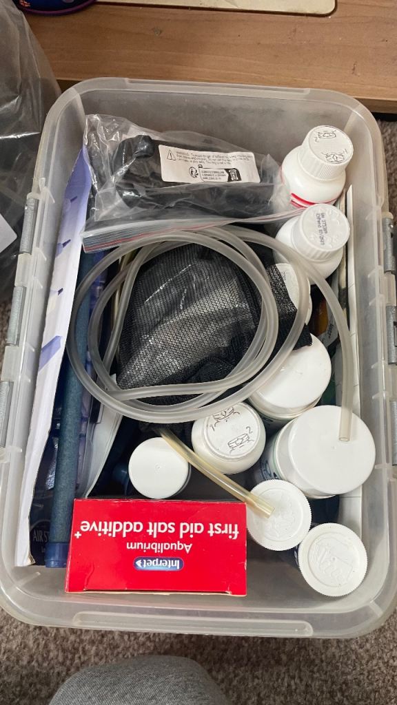 All cleaning equipment, spare filter sponges, spare air pump-(used)