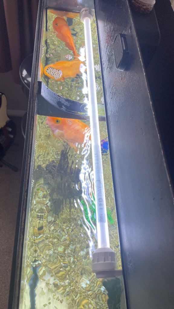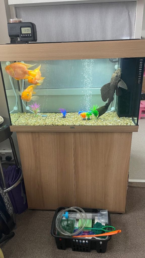 This is a complete set up including fish (3 x Parrot Fish and a large Plecostomus.