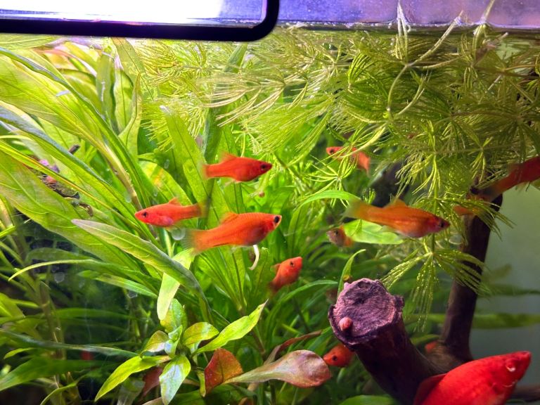 • 3× Orange Swordtails – bright, vibrant fish that really stand out