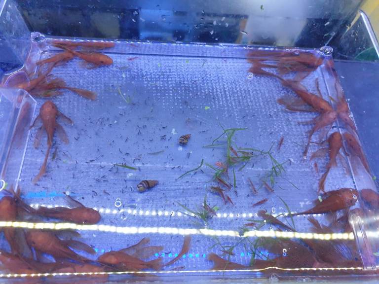 This fish are very healthy feeding them on multiple foods like flakes, tetra granules, algue wafers, banana worms and baby brine shrimps