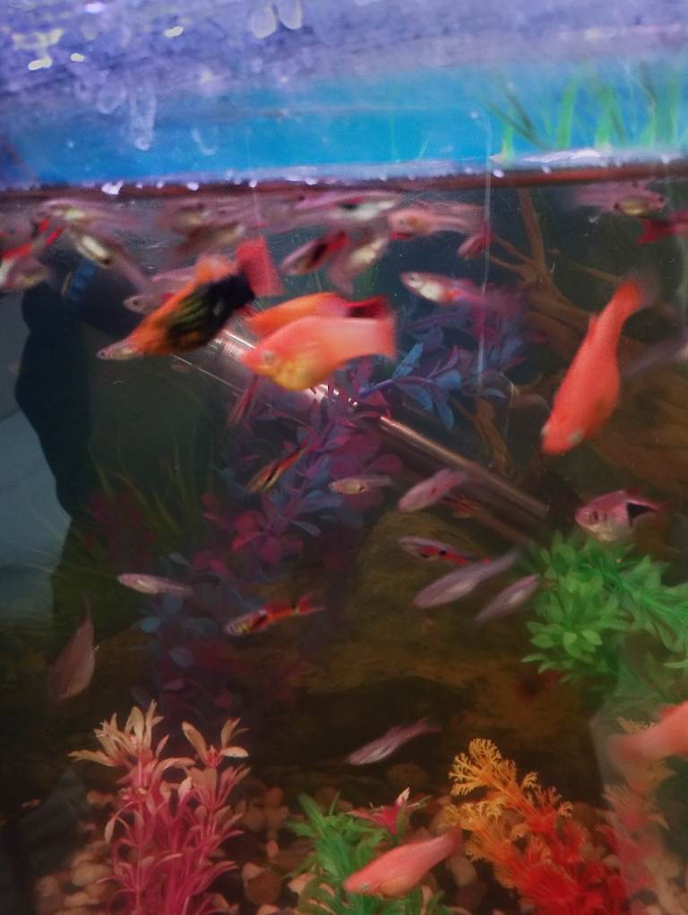 I have loads of juvenile and baby endler guppies, mollies and cherry shrimp for rehoming.