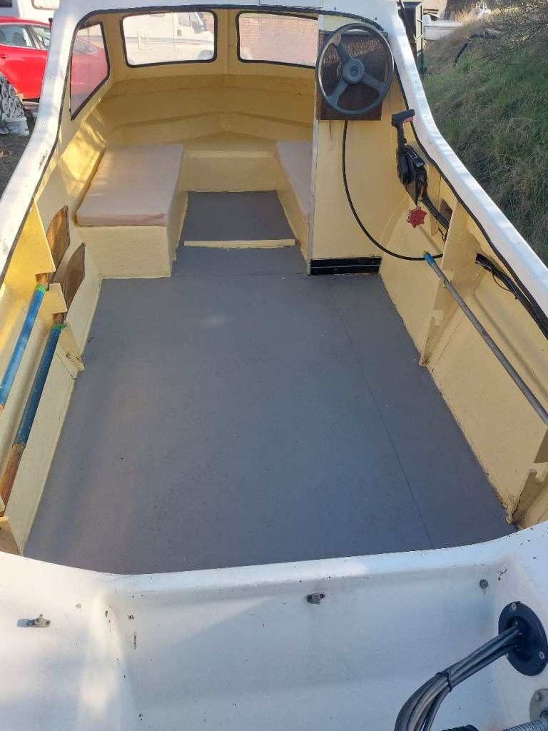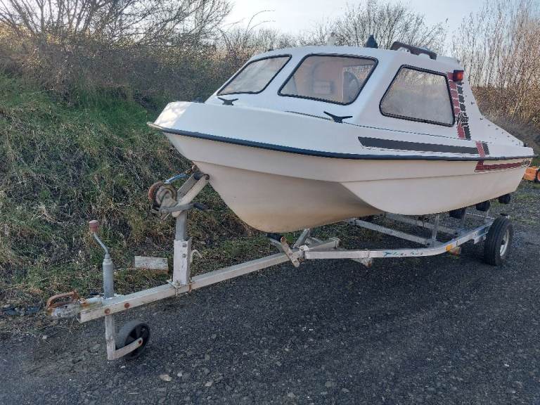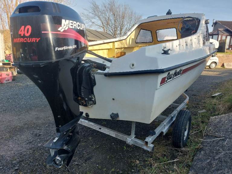 For sale is this Sea Hunter virgo 15 1/2ft fishing boat. Nice economical four stroke engine serviced last season. Power trim and tilt. New tyres and wheel bearings fitted. Forward cushions, open deck, paddles, anchor, fenders. Ready for the season.