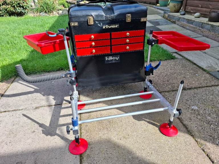 MAVER REALITY R100 FISHING SEAT BOX HAS FOUR HOLES DRILLED IN THE BOTTOM IF YOU WANT TO BOLT IT TO A TROLLEY