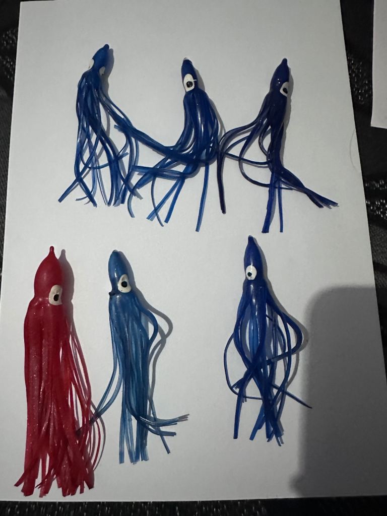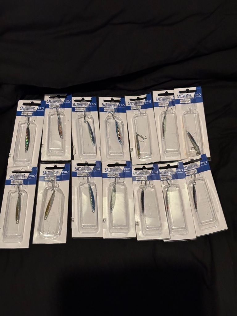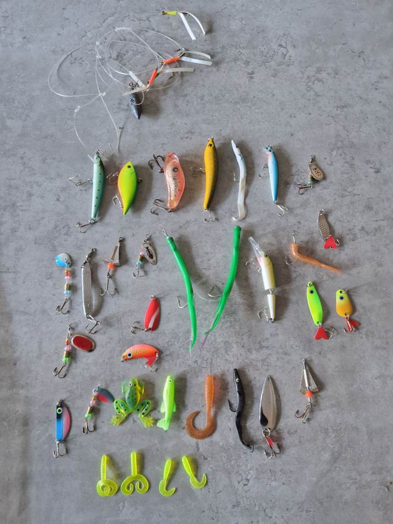 Various lures, rigs, jigs, feathers bought for sea fishing but never used.