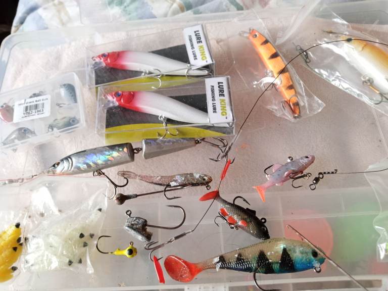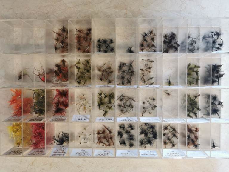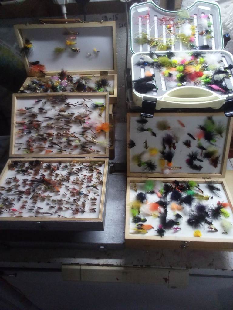Huge selection of fly tying equipment, including 2 tabletop vices, tools, extensive selection of hooks, numerous collection of coloured cottons and threads, hackles, fur, feather and dubbing etc. sufficient to fill 3 average sized concertina style tool boxes, many hundreds of pounds worth if purchased individually, collection from Shrewsbury only £175 no offers although may split