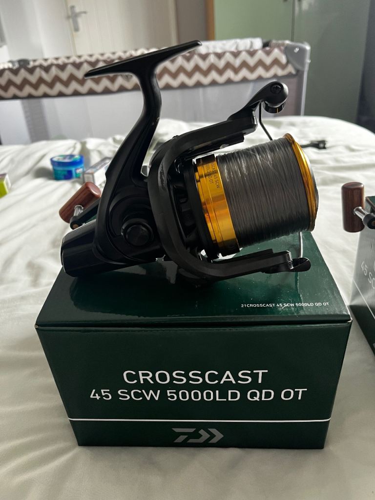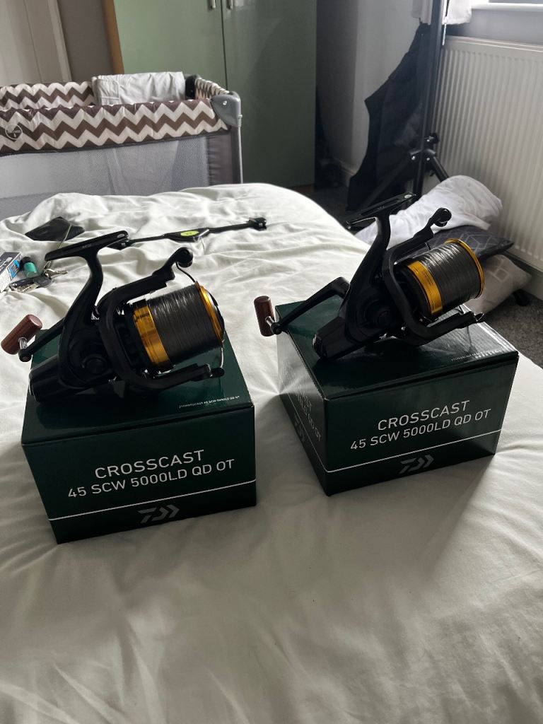 2x daiwa crosscast 45 SCW 5000LD QD OT big pit carp reels loaded with esp syncro XT 15lb line