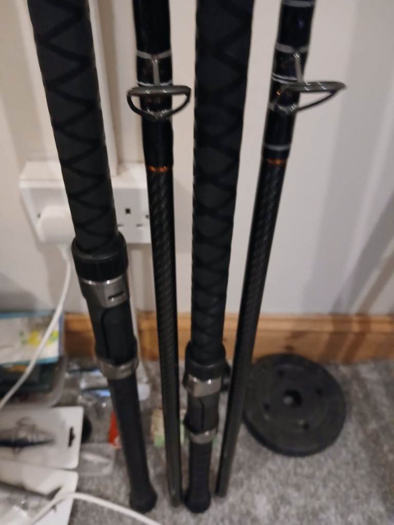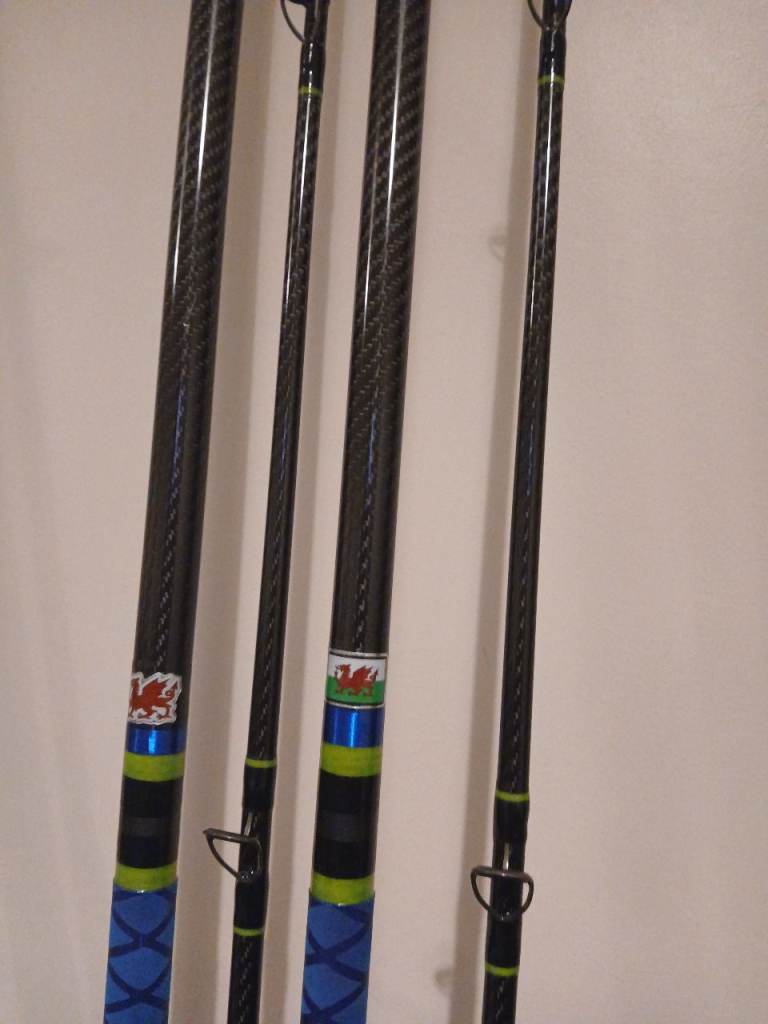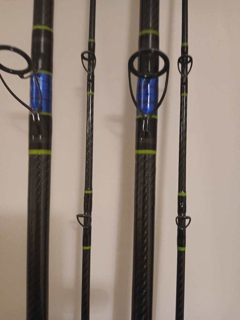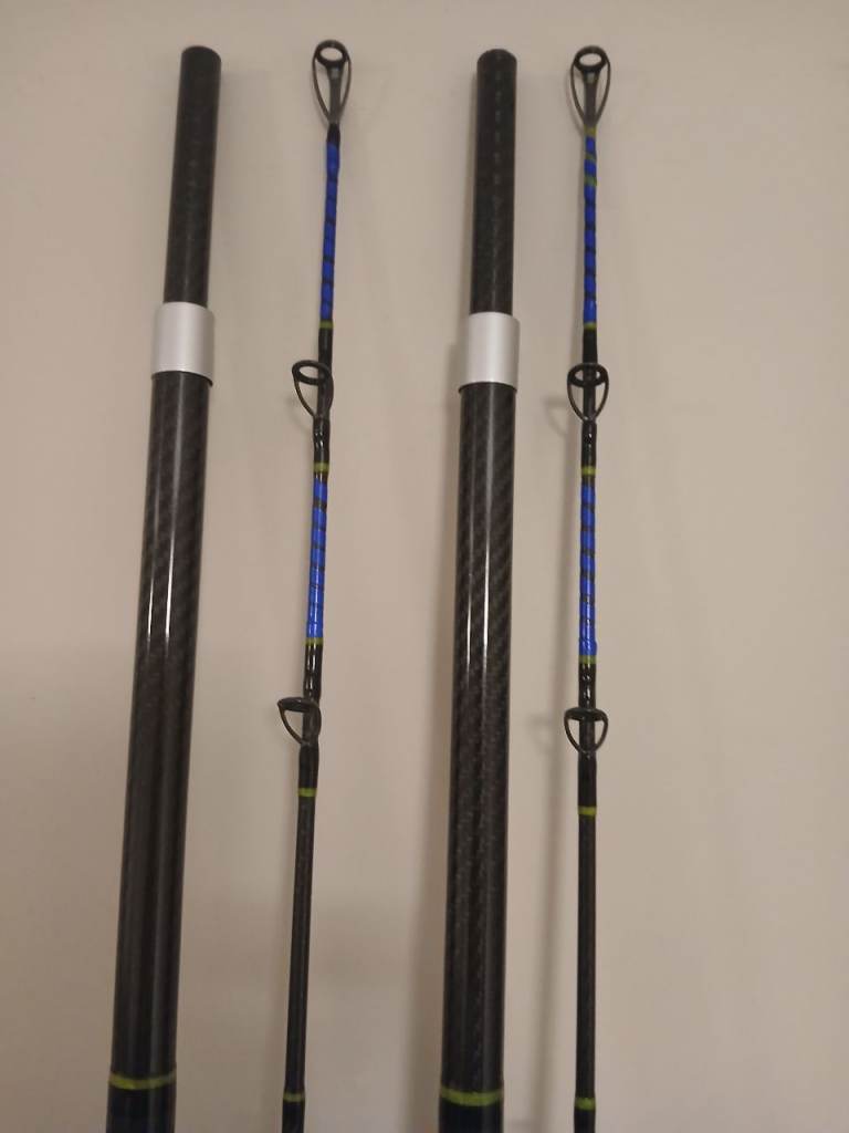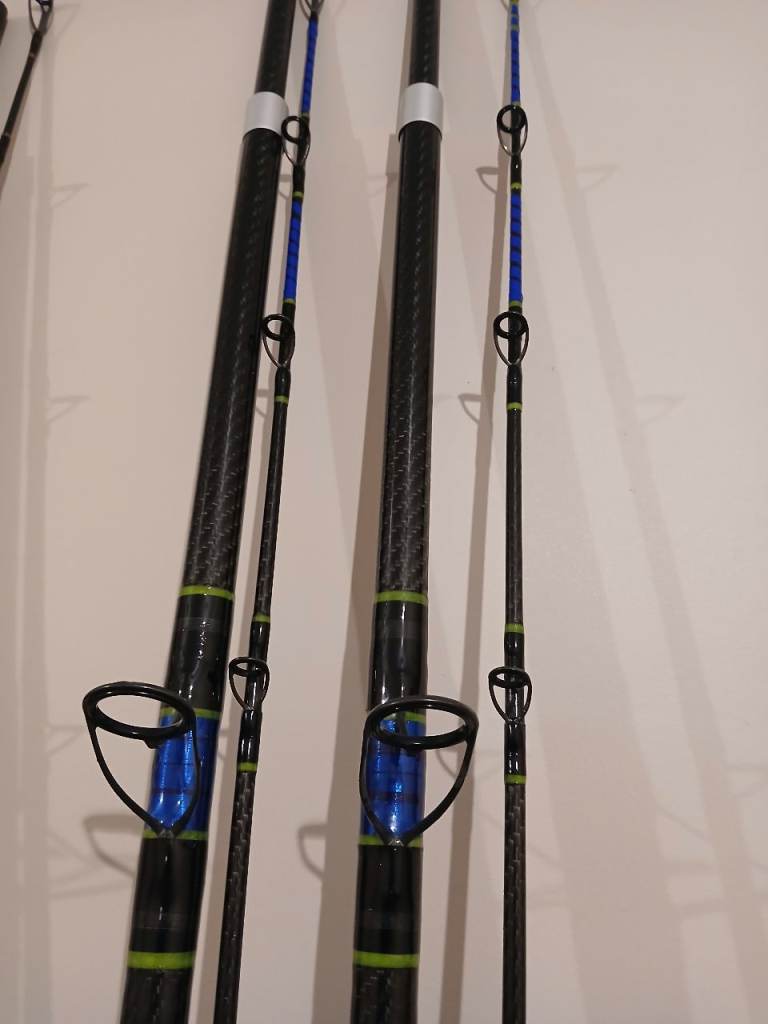40t carbon 14ft fuji eyes casting weight 7.oz plus bait fantastic casting rod's really good bite detection phoenix 9000 custom bilt price is for 1 rod.