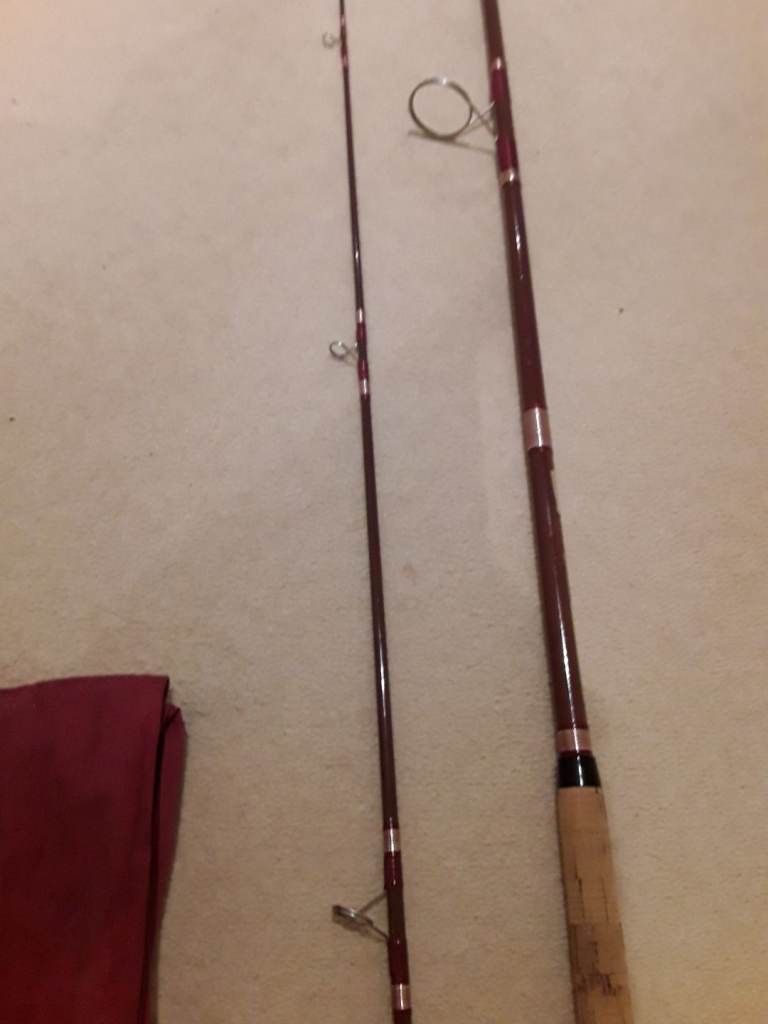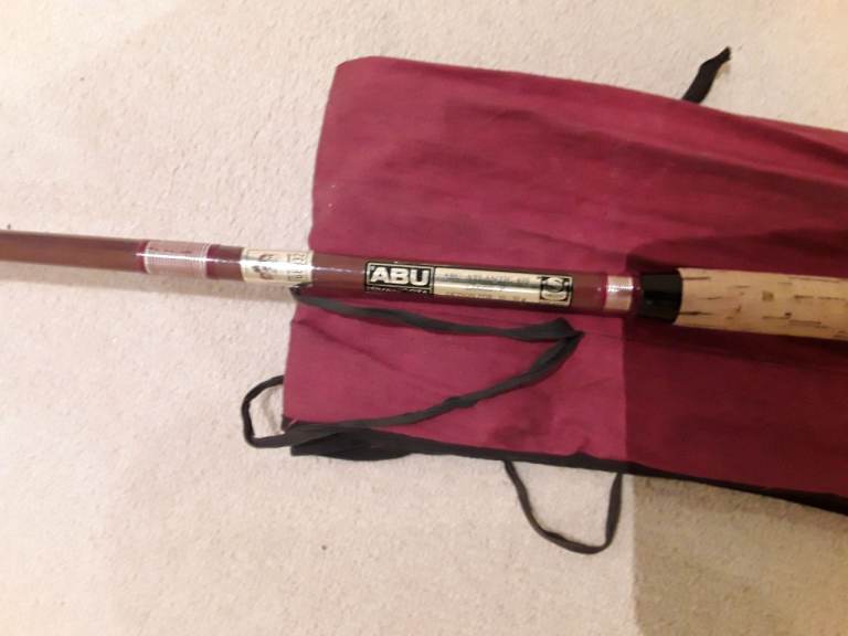 A vintage Abu Atlantic model 410 spinning rod, made in Sweden, in excellent condition, 9 foot in length, all rings and whippings are original and intact, casting weights up to 50gms, complete with its original rod bag. Collection only, cash on collection.