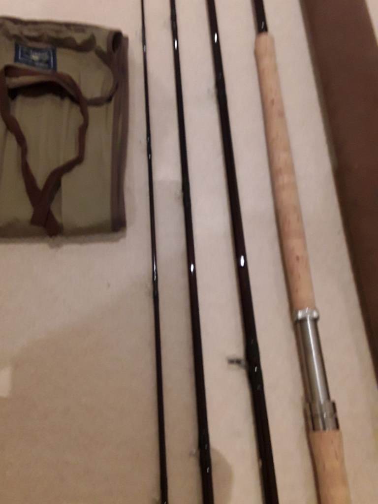 A Daiwa Alltmor Spey salmon fly rod, in excellent unmarked condition, 14 foot in length, line rating #8/10, 4 piece rod with special flexi spigot joints, complete with its original rod bag and Daiwa rod tube. Collection only, cash on collection.