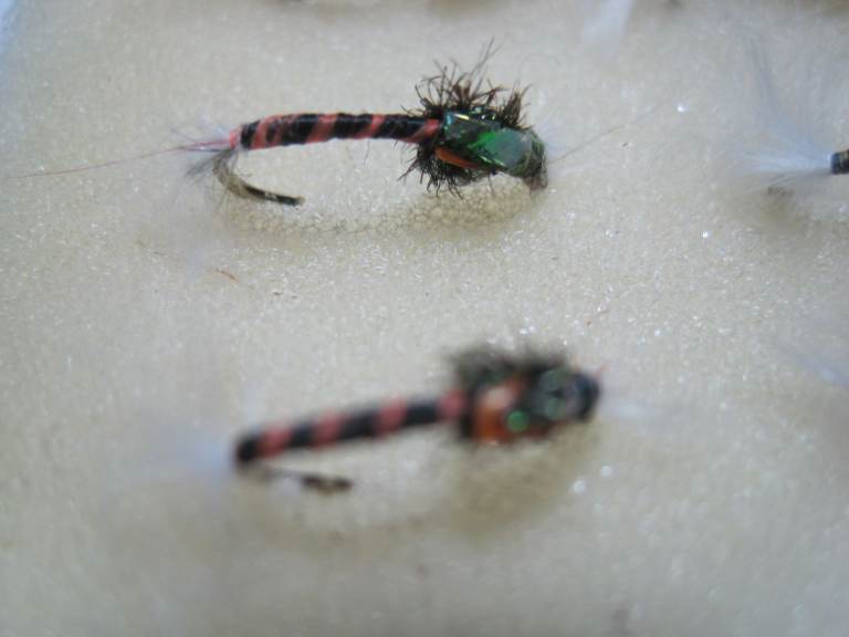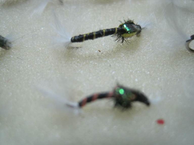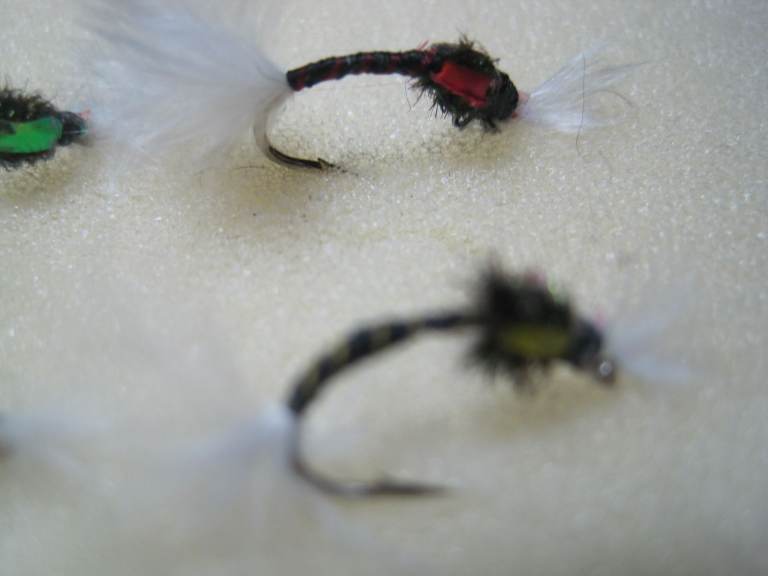 Buzzers with biot wing buds and mirage tinsel over the thorax. . Shuck and breathers can be easily thinned or shortened to your preference. Tied on special buzzer style hooks.. 60p each