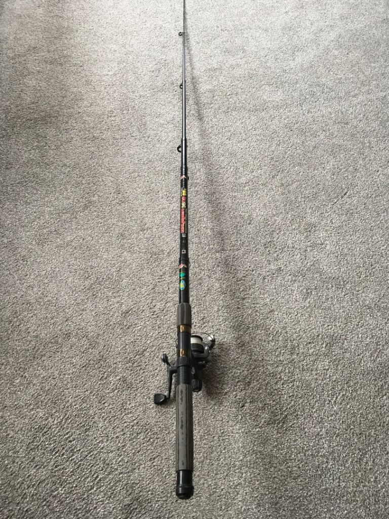 Telescopic fishing rod and reel. Extends to 11ft. Closes to 61cm.