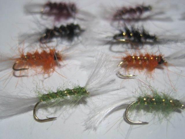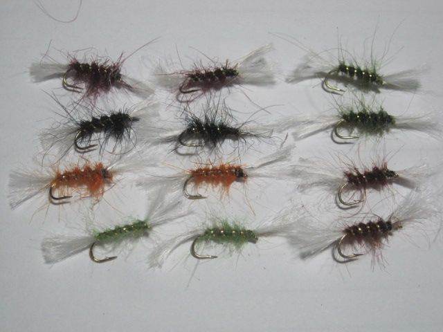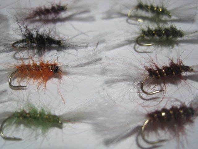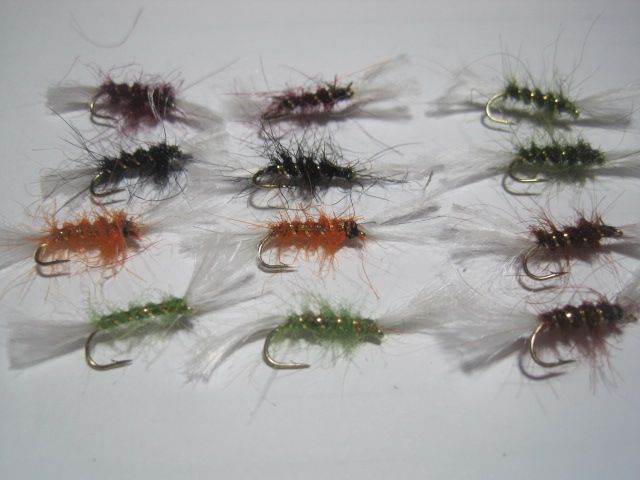 Available in black, olive, bright green, dark green, amber, orange, claret, fiery brown size 12 at 55p each Tied on Veniard Osprey hooks which cost £3.25 for a packet of 25.
