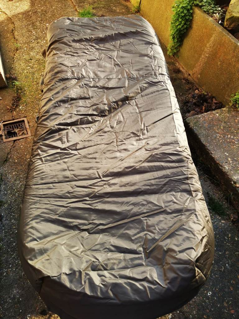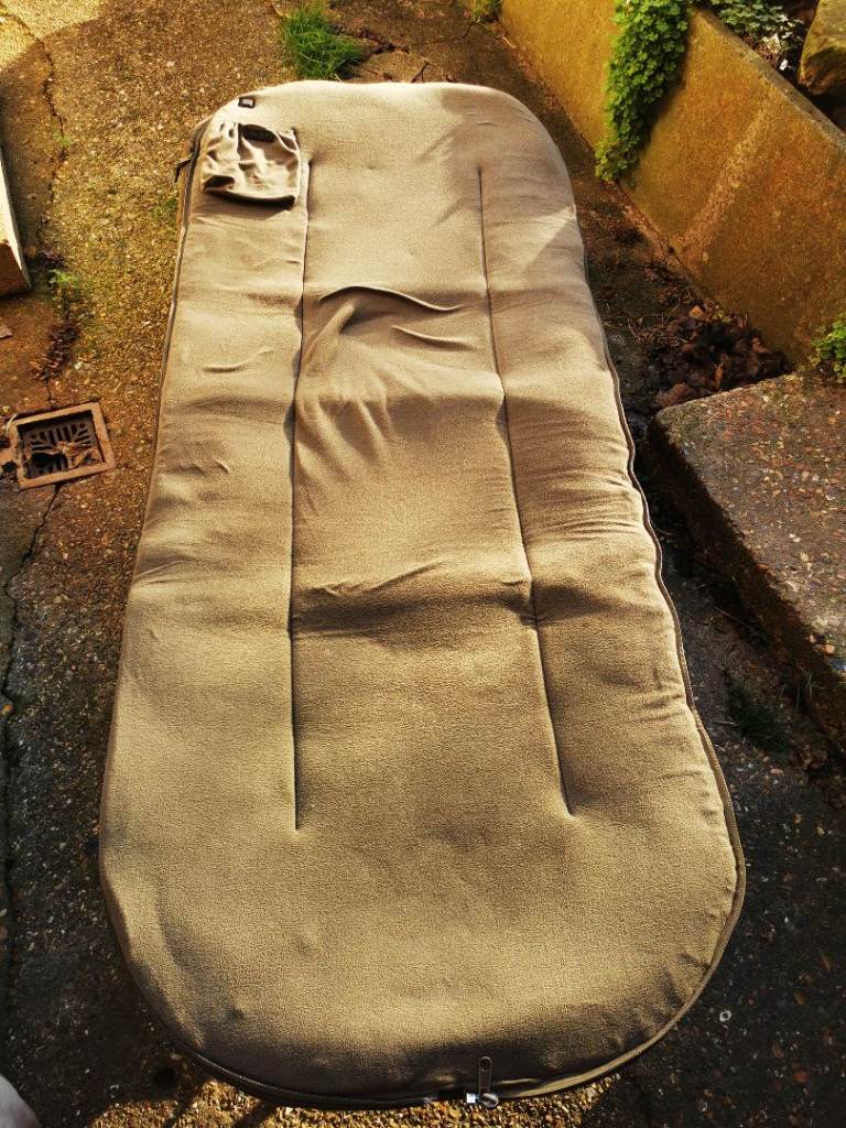 Avid benchmark 5 season bedchair with avid heated mattress all working in great condition comes woth trakker aquatexx bedchair cover and trakker bedchair bag