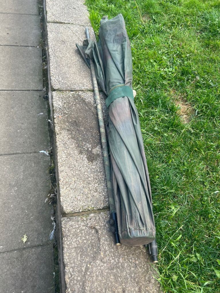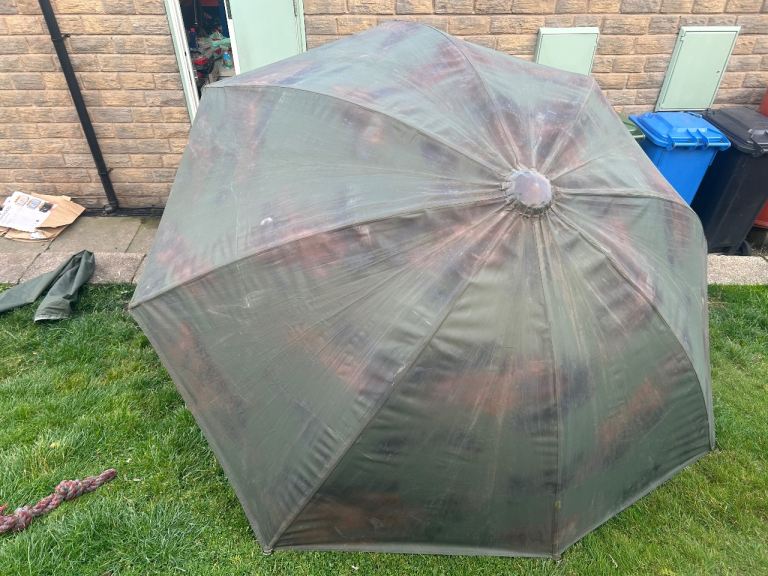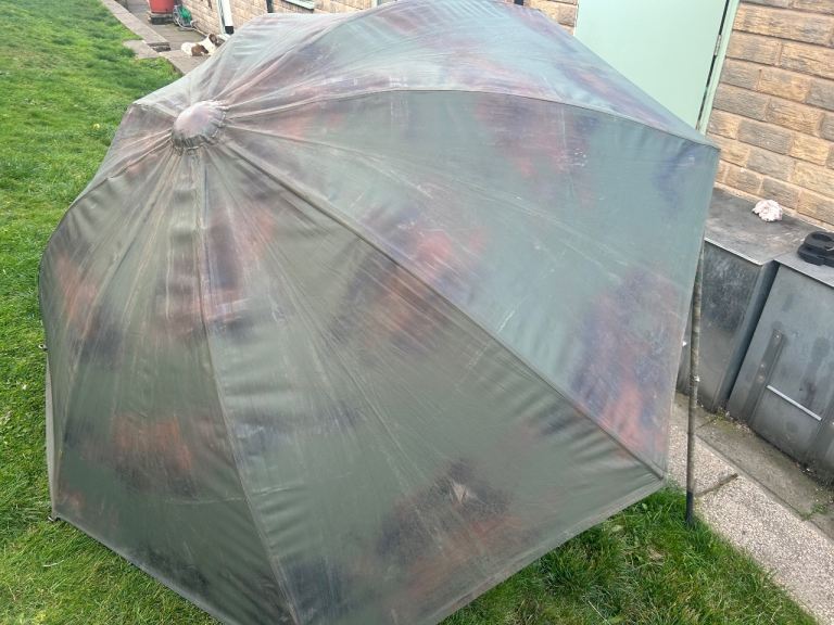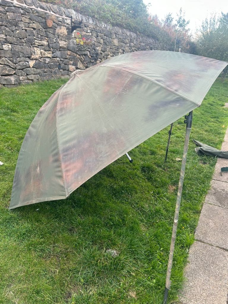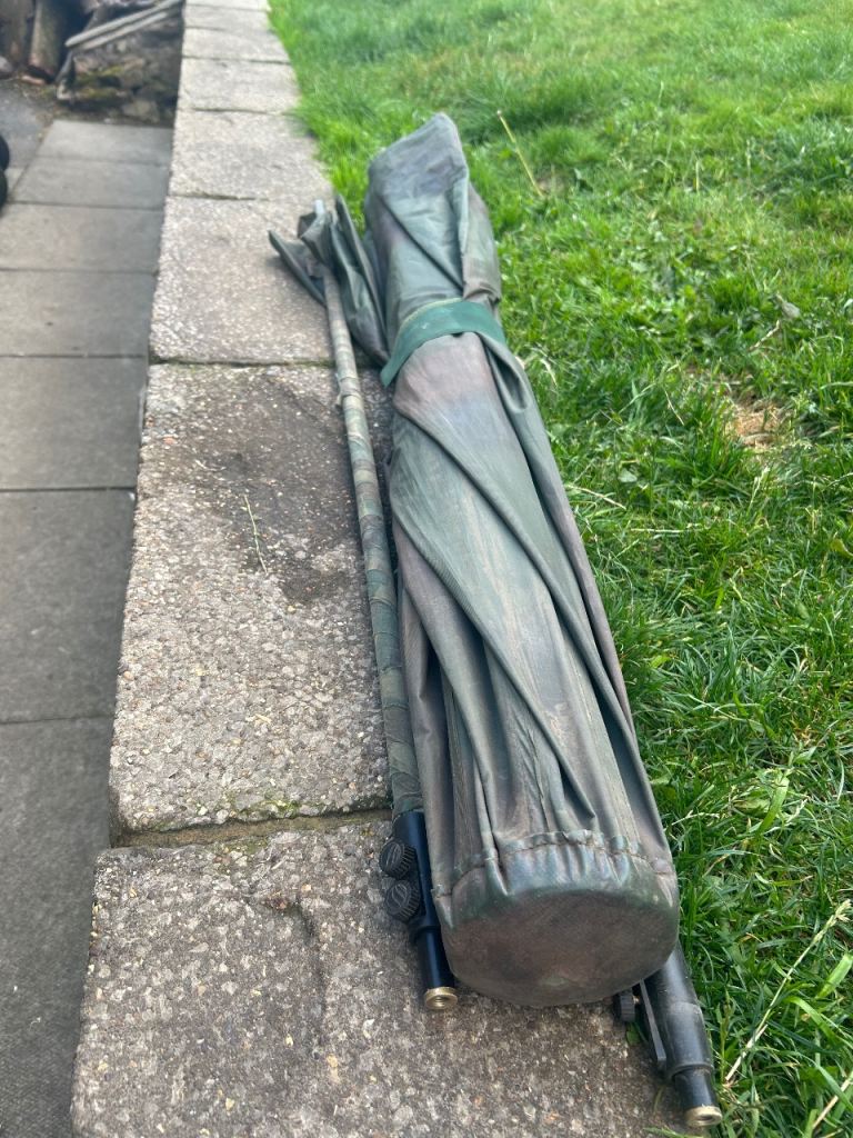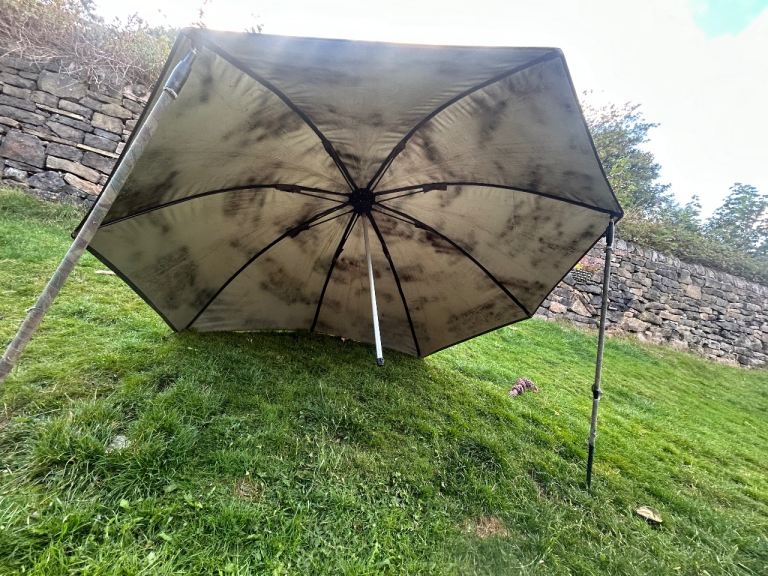 Fox brolly ideal for day session angling does squeeze a Bechair under as shown in pics. Collection only