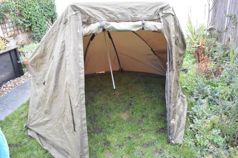 Sonik Sk-Tek 60" brolly front. Only used about 6 times, so in very good condition. No rips or tears, all zip and clips are good. According to Sonik, it'll fit most 60" brollies. Really quick to put up, you just clip it onto the bell cap and peg it out. I've photographed it on my Fox R Series brolly, as I haven't got the Sonik one anymore. Collection from Watford, Herts.