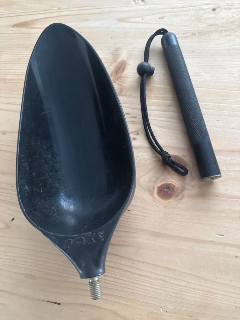 A used and in good condition. Scoop can be screwed on to a longer poles 12’ or more if you have one for a discreet margin feeding and dropping your end set up. Scoop can be used to mix particles in buckets etc without getting your hands wet!