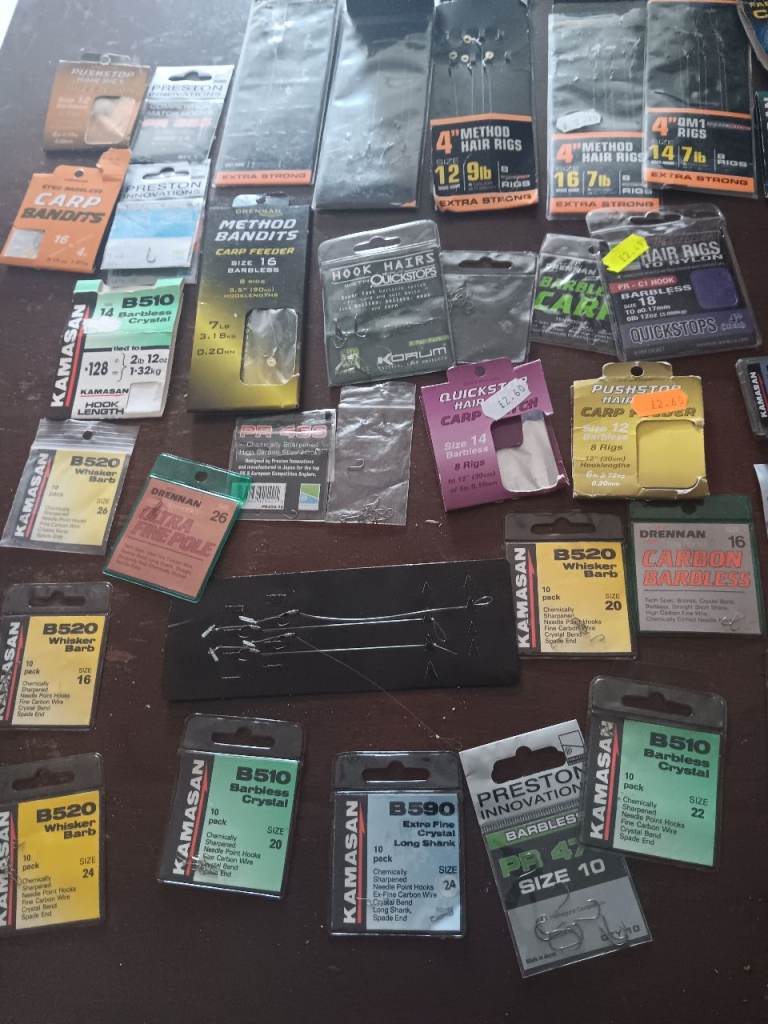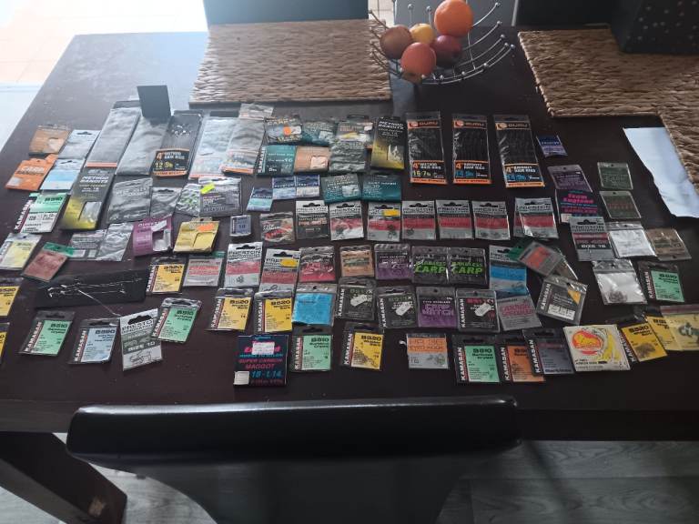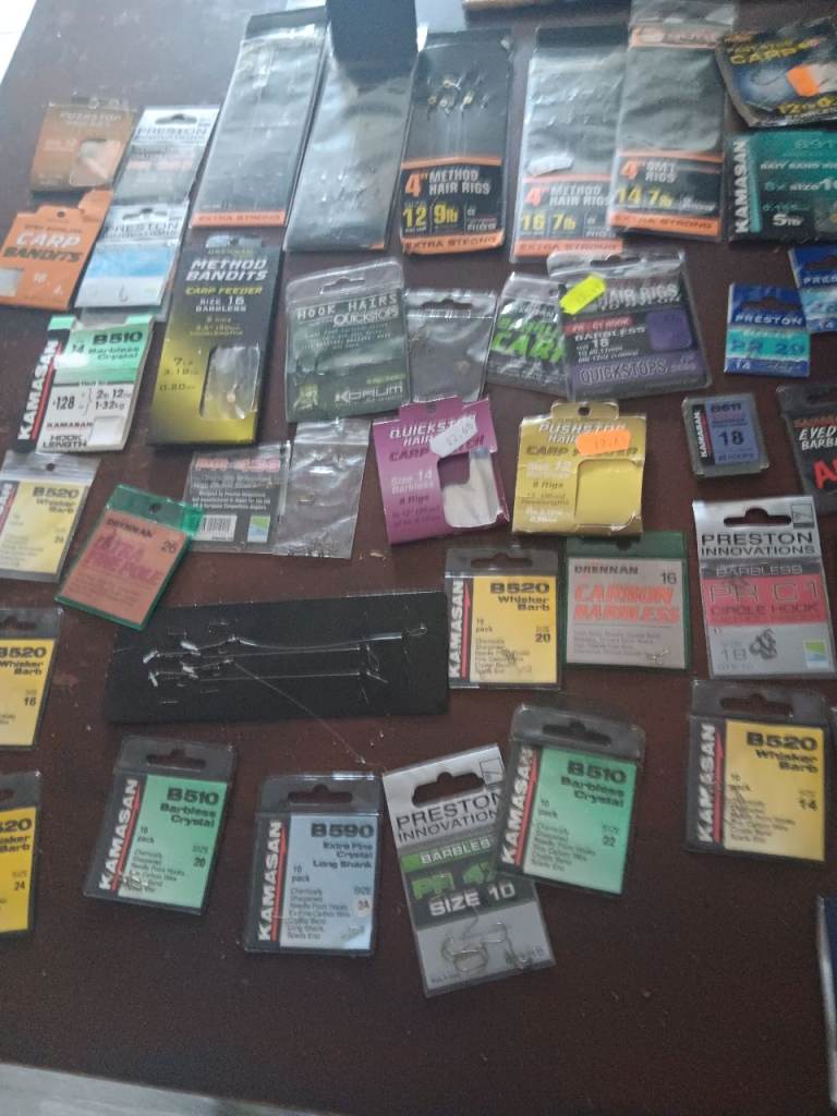 Brands like Kamasan and Preston Innovations, all unused and ready for the water.