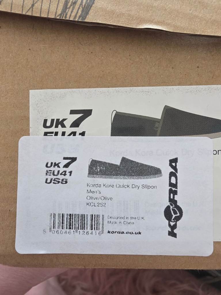 Brand new never worn mens korda quick dry slip on shoes in olive green size 7