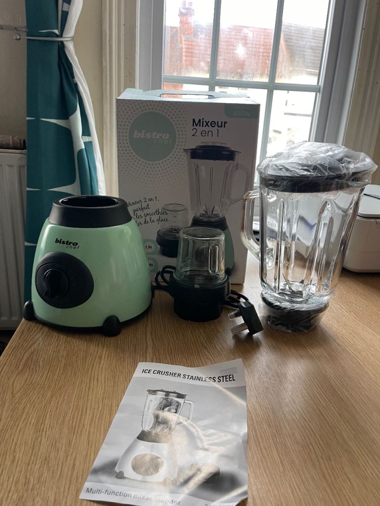 2-in-1 Nuts Ice Crushing Mixer Blender 850W, Professional Handheld Kitchen Blender 1.5L for Smoothie Maker, Fruit Juice, Shake, Made from Glass & Stainless Steel (Red & Black, Pack of 2)