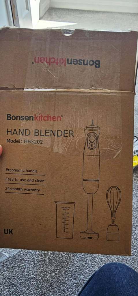 Bonsenkitchen Hand Blender, 3-in-1 Immersion Blender handheld, Stick Blender Electric with Stainless Steel Blade, Egg Whisk, 700ml Beaker for Making Baby Food, Soups, HB3202 (Black)
